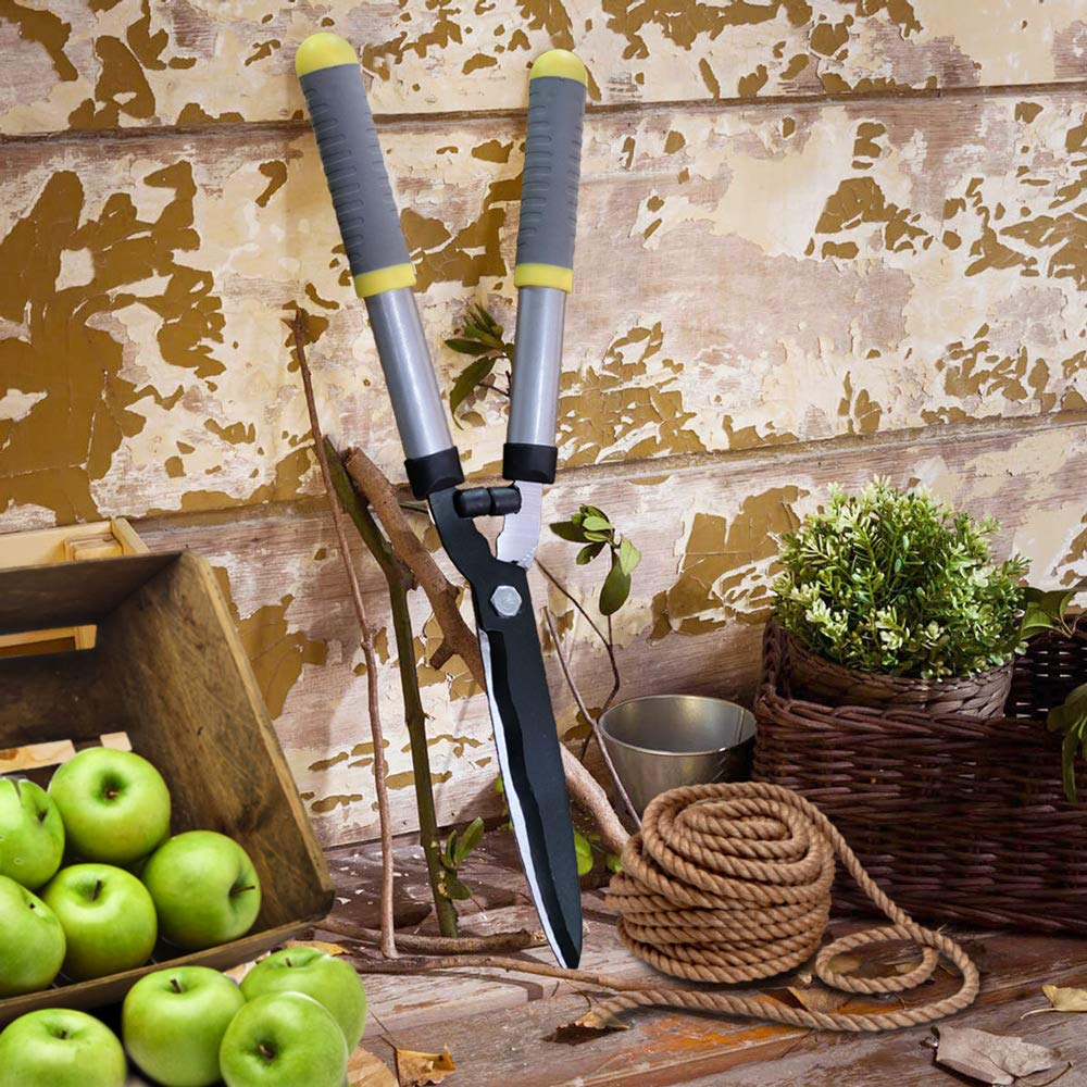 - EASY CUT WAVY BLADES: the blades of this hedge shears are made of forged carbon steel with anti-stick coating, which provides a great cutting performance and long-lasting usage. Wavy blades design makes cut smoothly and easily, keep the twigs from slipping off. The clean smooth cuts are better for plants' health.