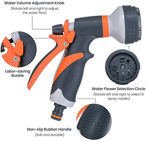 - ✅ Outflow Control Knob ➔ Thanks to our product you can adjust the Flow control that adjusts the level of water sprayed. This Keeps your pets and Plants Safe From High Pressure which make hurt or cause damage. Did you know that our garden hose nozzle features a oranger lock bar on the top of the handle, You can Easily lock the clip when you need to spray a long time, without manual control.