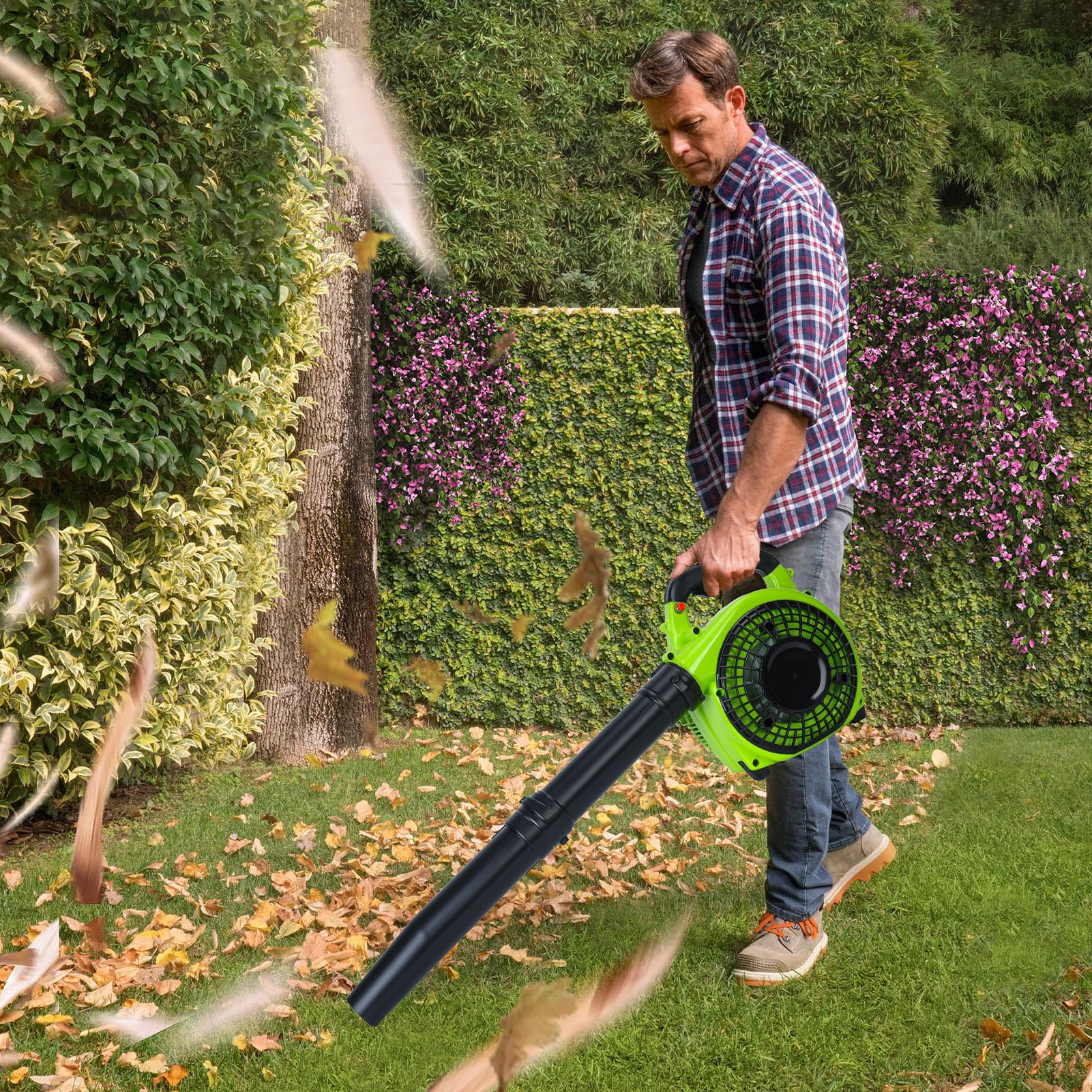 Cordless Petrol Leaf Blower, 26cc Snow Grass Lawn Blowers, Vacuum Powerful 2 Stroke Air Cooled Engine, Portable Handheld, For Blowing Leaves, Wood Chips, Dust, Garden Debris, Grass Cuttings (Green-A)
