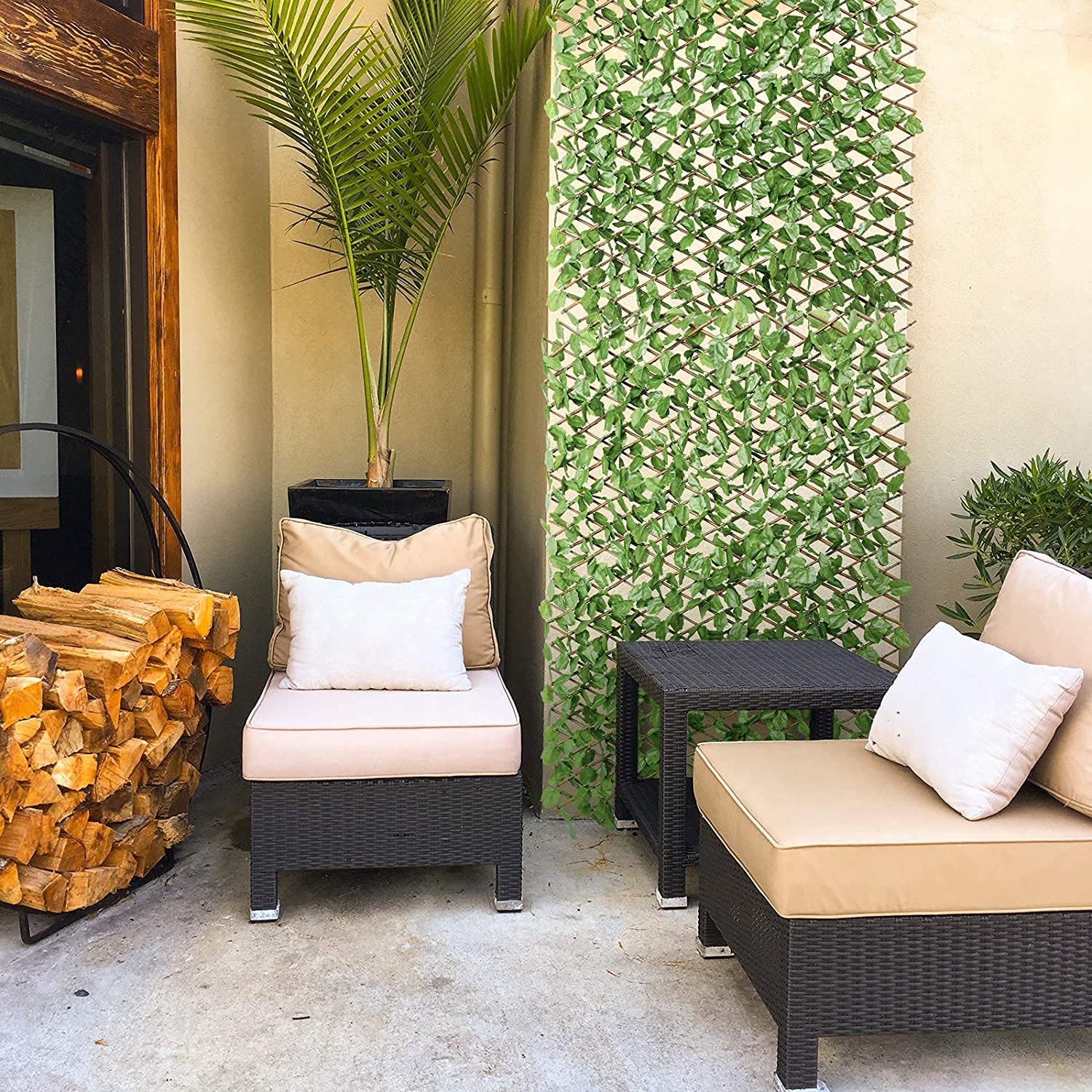 - 【Wide Applications】Made with real wood lattice and realistic artificial leaves, our fence screens will be a perfect decoration for patio, balcony, home or entryway as needed. In addition, artificial leave fences can be placed to provide shade for the hot summer. You can use it to create a privacy space.