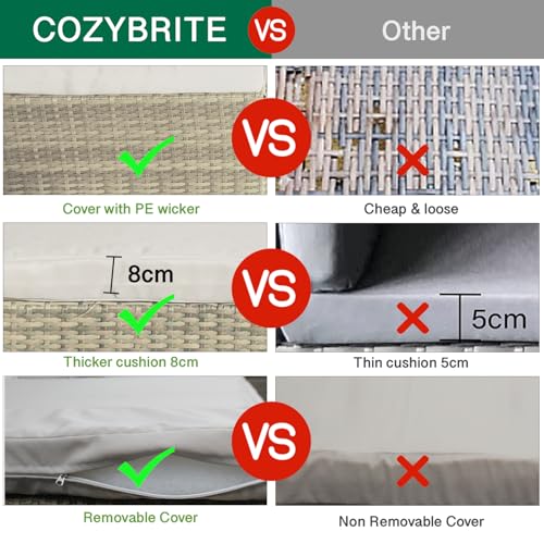 - COMFORTABLE SITTING - Unlike other's, this 4 seater rattan corner sofa set comes with wide seats and comfortable thicker waterproof cushion 8cm. Plus with coffee table, this garden furniture set, like a real living room where comfort comes first, offers an oasis of comfort to you, your family, and guests.