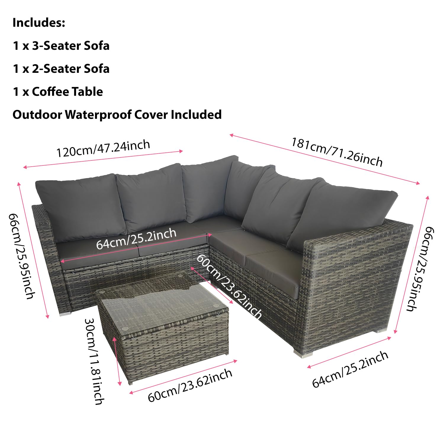 - OUTDOOR 3-PIECE PATIO SET - Use this corner outdoor sofa to help transform your backyard or garden into a relaxing escape where you can relax after a long day at work, bond with family and friends outdoors or simply enjoy the warm weather and have your own mini holiday. Includes outdoor waterproof cover