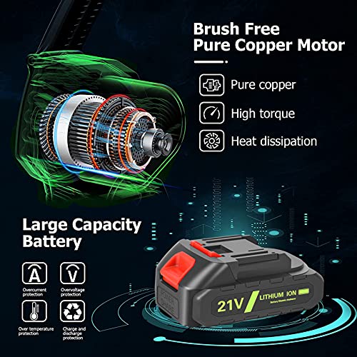 - ✔ 【Larger Capacity Battery】The electric chain saw is equipped with 21V 2000mAh rechargeable lithium batteries, can provide enough power. After fully charged, the one handed portable battery chainsaw can be continuously used for 40-50 minutes. Wireless chain saw can be used and controlled by even people with small physical strength.
