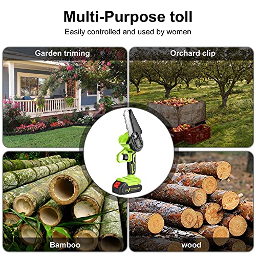 - ✔ 【Powerful and Efficient】This cordless chain saw is equipped with high-quality guide chain to ensure the best cutting performance. The powerful chainsaw takes about 10 seconds to cut a log with a diameter of about 12cm, the specific value varies with the actual size and hardness of the wood. A powerful motor with a speed of up to 5 m/s and an output power of 550w, makes the mini chain saw faster and more efficient than other electric saw.