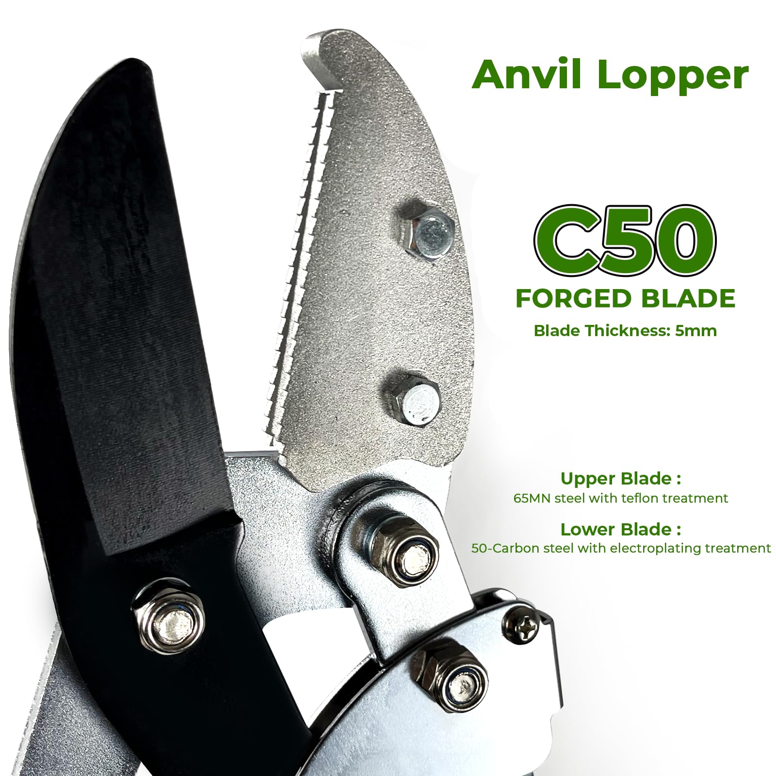 - [Premium Blade Quality]: The lopper features a large, hardened C50 carbon steel blade that's been fully heat-treated three times and edge-ground to maintain sharpness and durability. It's a powerful cutting tool that's built to last.