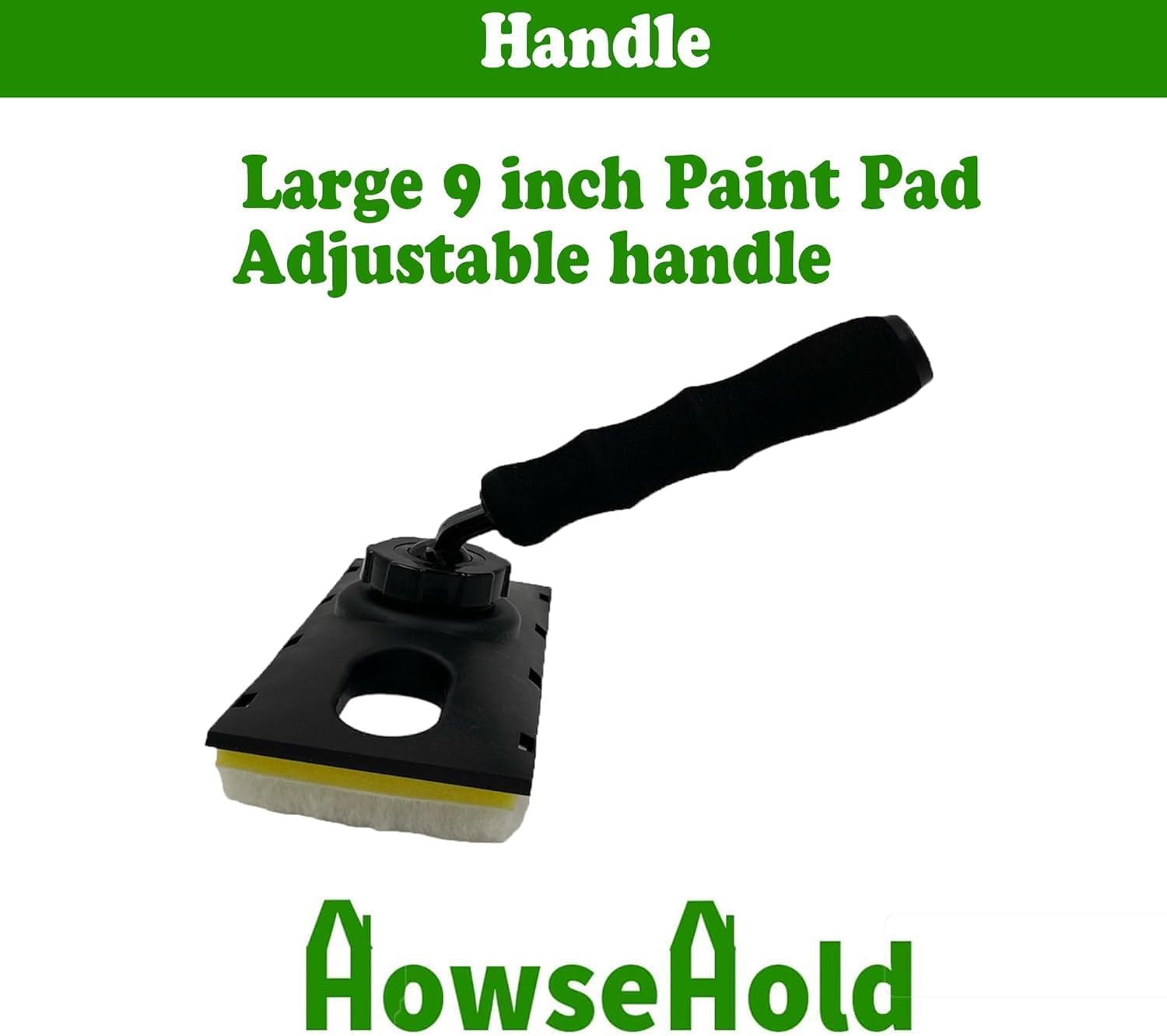 Details: INCLUDED - 1 Large 9 inch applicator pad, 2 replacement paint pads, 1 large paint tray, 5 part extension pole ⚫️ SMOOTH - Achieve a Smooth Finish with Minimal Splatter: - Experience faster and more efficient application compared to traditional decking brushes and rollers. - Prevents excessive soaking for even coverage and a polished surface. ⚫️ MULTIPURPOSE - Perfect for applying oils, treatments, or paint to large wooden decks, concrete surfaces, garage floors, bricks, render walls, and more ⚫️ COMFORT - Comes with a sturdy 120cm multi-section metal handle. Extendable for comfortable use without bending; simply attach the pad handle to the extension pole for a secure grip ⚫️ ADJUSTABLE - Adjustable Head allows for perfect pad contact with any surface at any angle. - Easily adjust the angle with the rear knob and secure it in place for precise application.