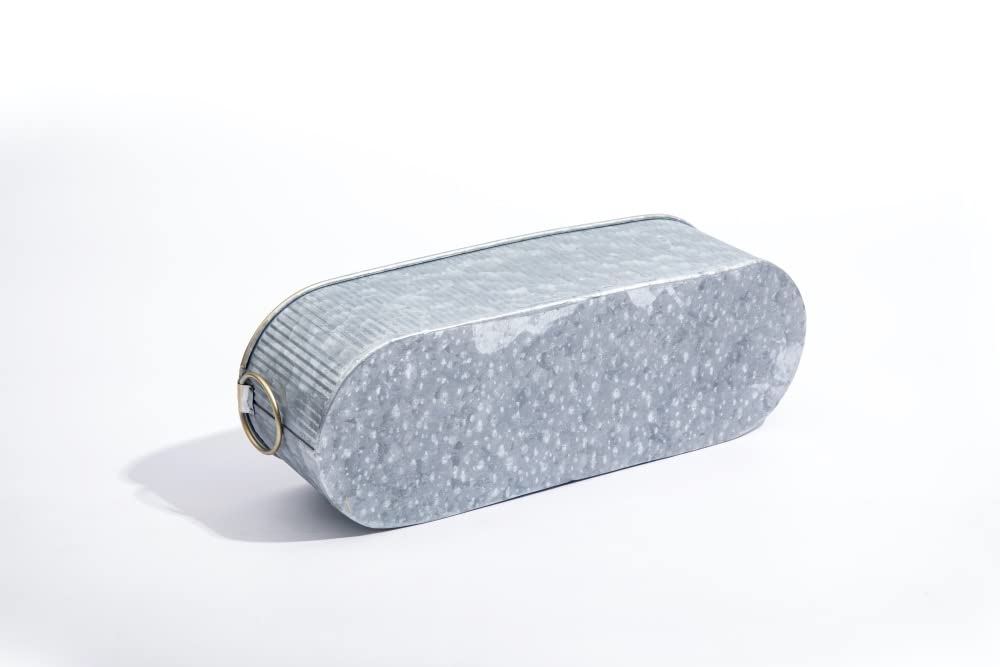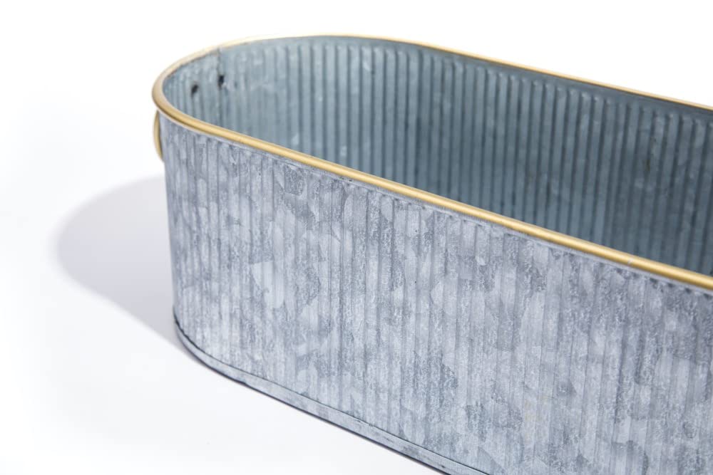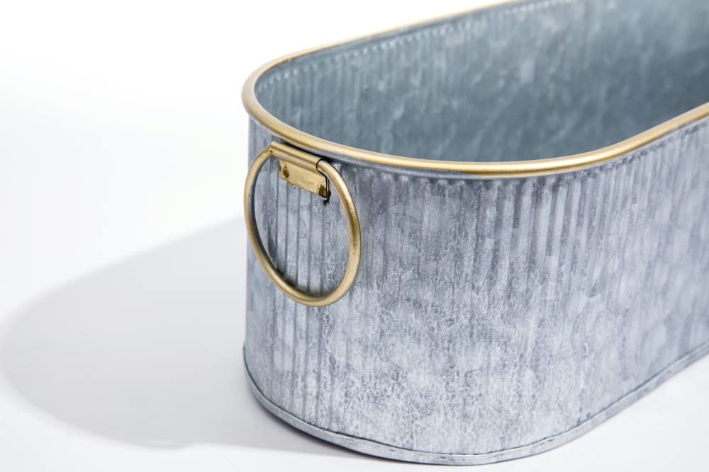 - These galvanized zinc plant pots have authentic quality details that include gold rolled rim surround, vertical corrugated ribs and top handles at either side.
