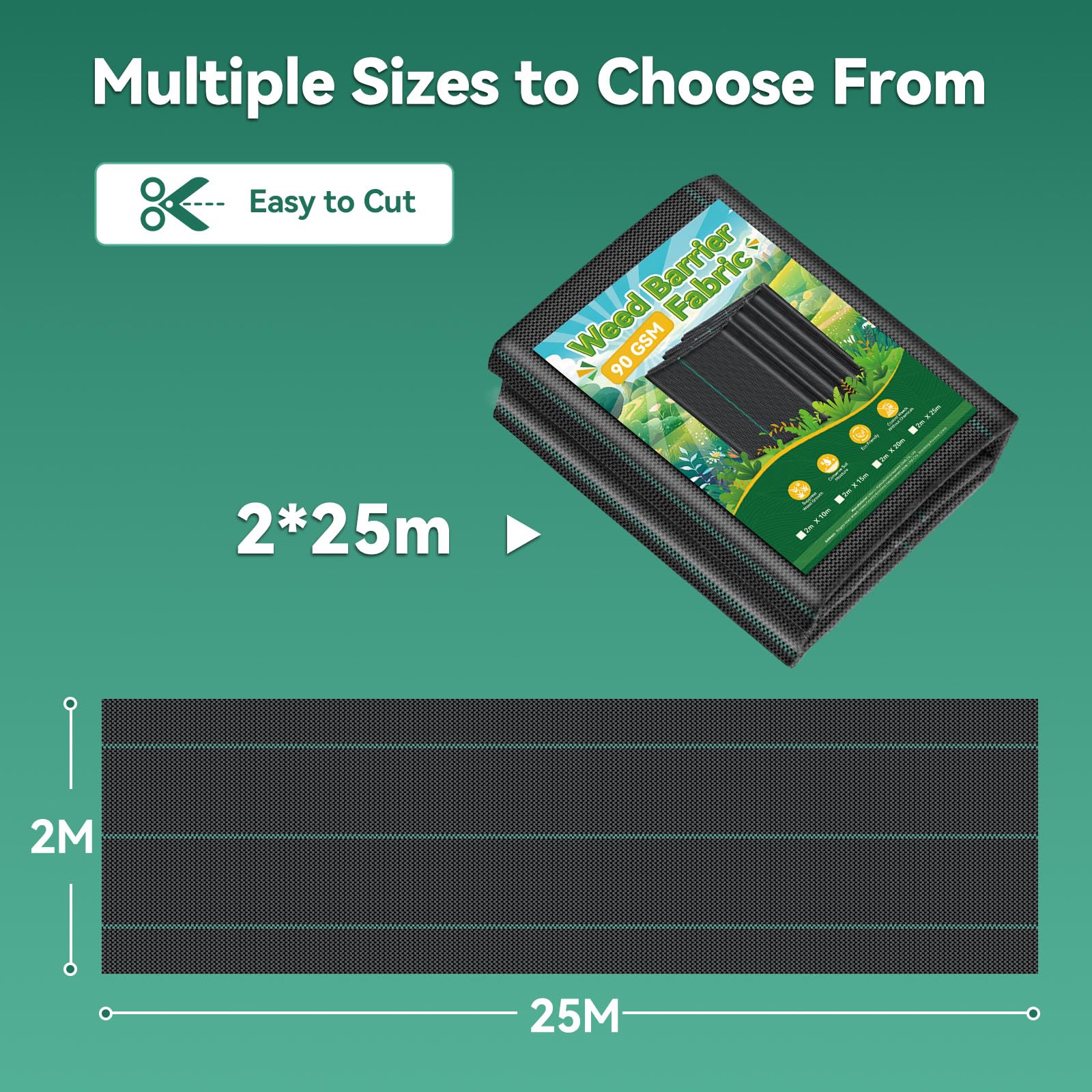 - 🌱[Foldable and Space Saver] : The weed membrane heavy duty are folded, making it easy to store or transport before use. Once laid out, the ground cover membrane will measure 2m x 25m or give you cover for a 50m² area. The heavy duty garden weed membrane material will keep the ground covered.