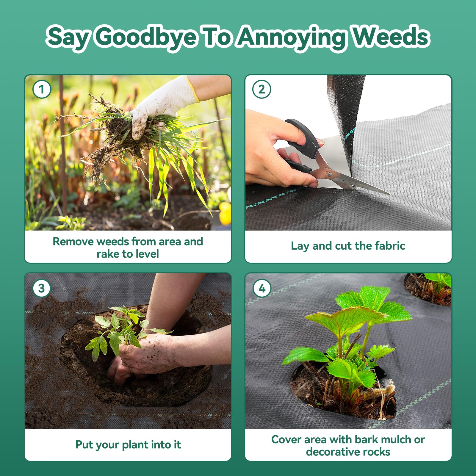 - 🌱[Permeable Weave Technology] : Our garden membrane weed control heavy duty is designed to allow the soil to breathe through the weed fabric while remaining hydrated. During heavy rains, there is less soil runoff, while nutrients and fertilizers nourish the roots.