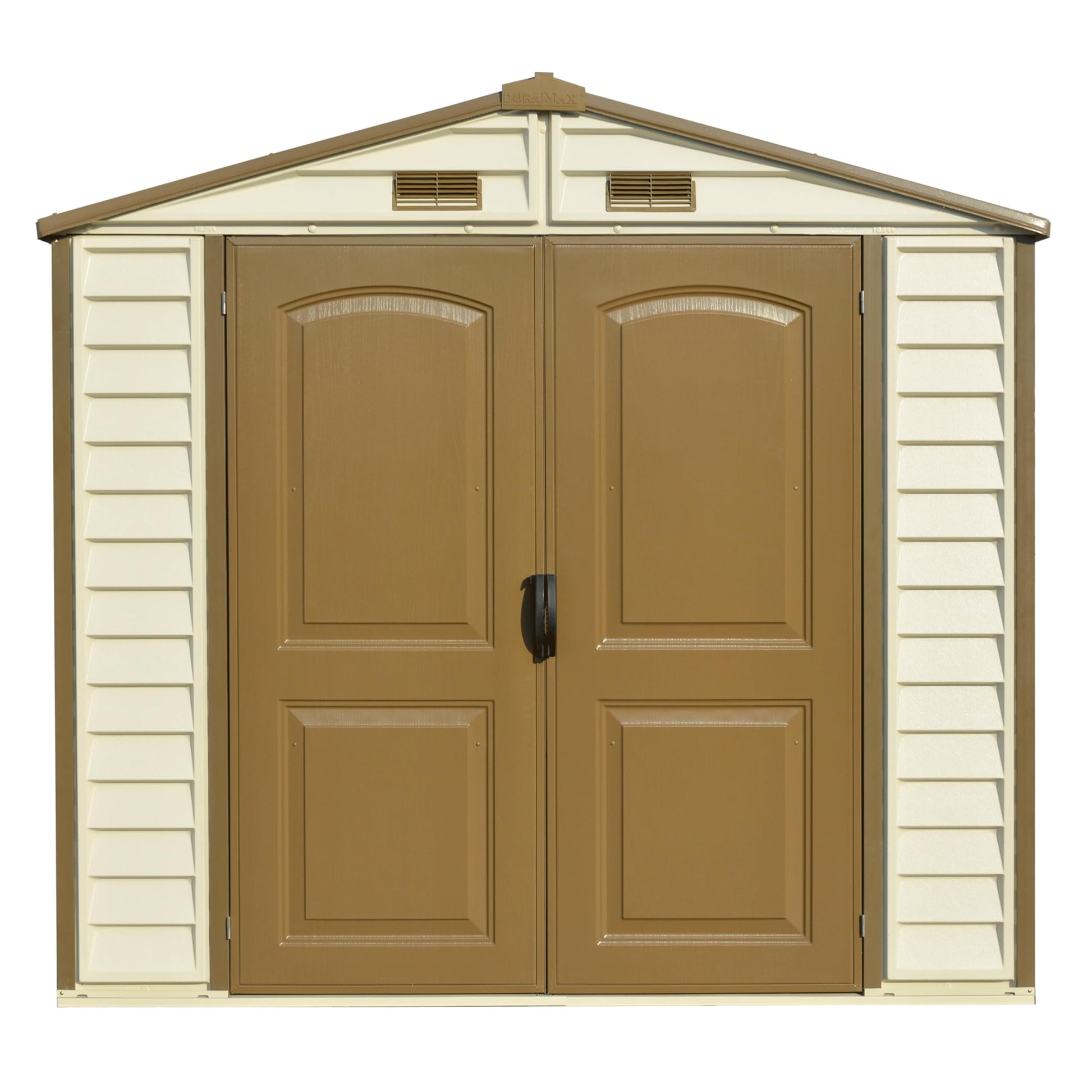 Duramax StoreAll 8 x 6 (4.12 m2) Plastic Garden Storage Shed with 1 Fixed Window & Metal Foundation Kit, Strong Metal Roof Structure Fire Retardant and Maintenance-Free Storage Shed - Ivory/Brown