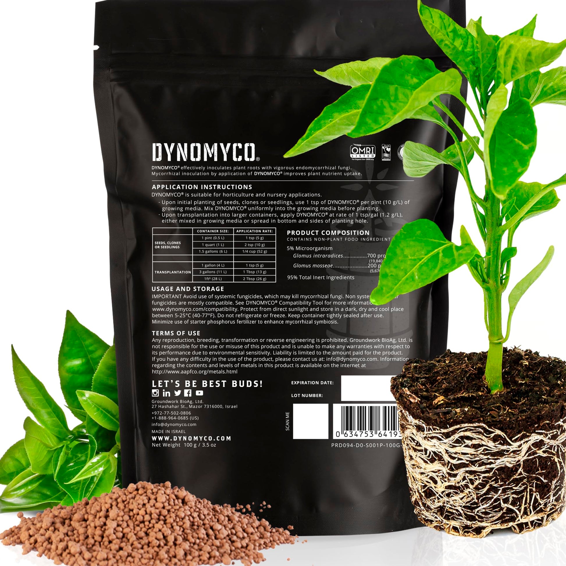 - STATE-OF-THE-ART RESEARCH: DYNOMYCO is based on 30 years of groundbreaking Israeli research of soil inoculants. Our team includes biologists, agronomists and soil health experts who have perfected DYNOMYCO’s formulation. DYNOMYCO undergoes strict, automated quality control, to ensure your plants get a safe and effective product, every time.