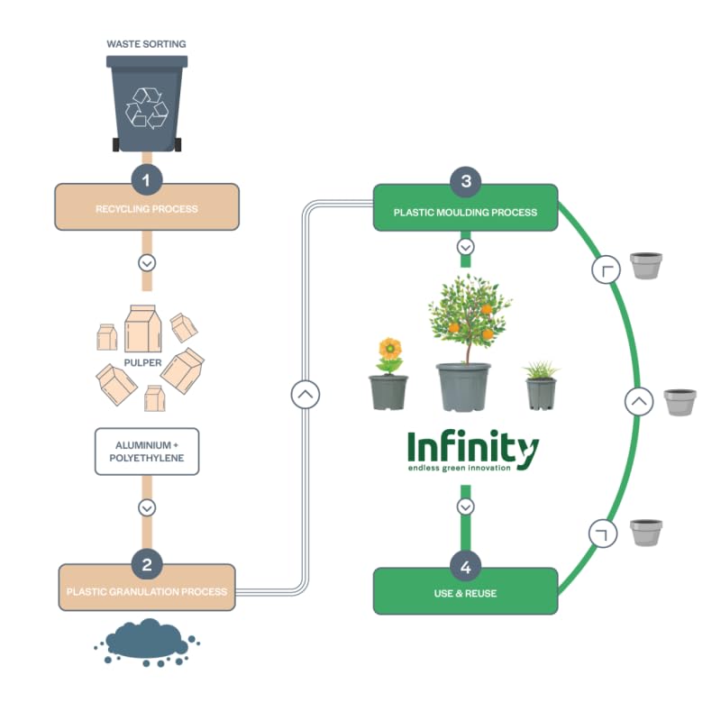 - Reducing, reusing and recycling are essential to help limit the effect our activities have on the environment. This has lead to the development of a new recycled and recyclable raw material called GranPlast. GranPlast is a material made from recycling Tetra Pak-type packaging. Thanks to this innovative project, tonnes of Tetra Pak-type drinks cartons discarded after use, are collected to transform them into a secondary-raw material. By separating its components and extracting cellulose from TetraPack to create GranPlast from the remaining components of polythene and aluminium.