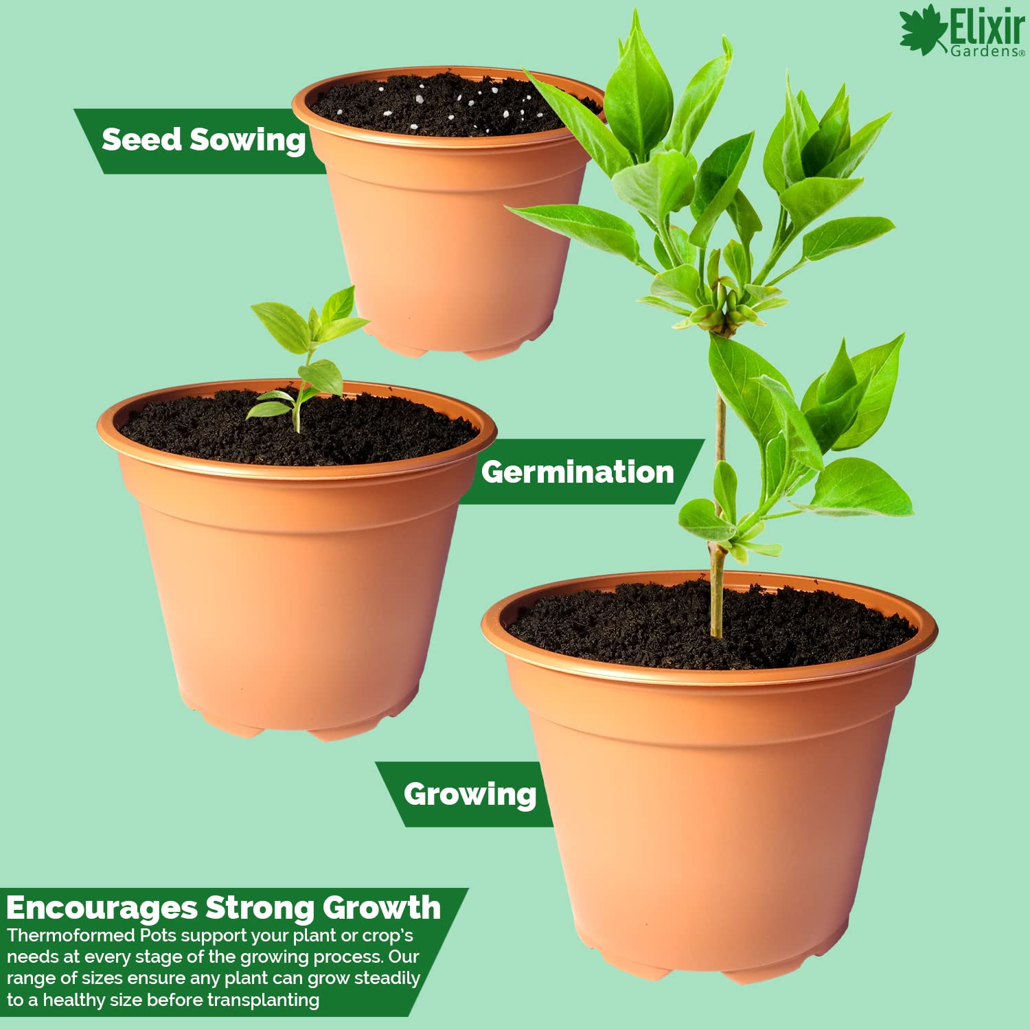 Elixir Gardens 9cm Thermoformed Seed Starting Seedling Terracotta Recycled Plastic Plant Pot/Flower Pots x 100…