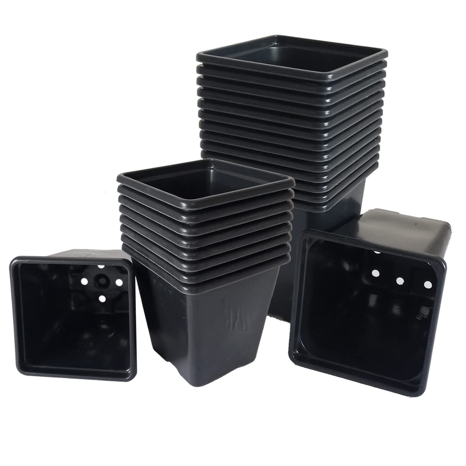 - We stock many sizes of black square pots, from 0.25 L up to 11L. Please note: Our 0.25L (7cm) and 0.75L (9cm) varieties are constrcuted from a slightly thinner thermoformed plastic and are predominantly designed for seedlings.