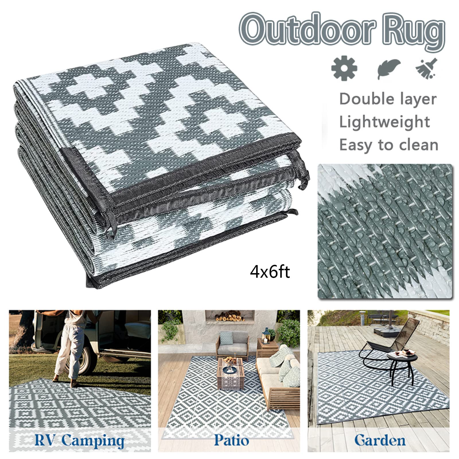- FOLDABLE AND PORTABLE Due to the light weight and seams in the middle, you can freely fold or unfold the indoor outdoor rug into an ideal shape for easily carrying and storing when not in use. Saving more time to enjoy yourselves. Flexible to be used indoors or out, covering picnic, patio, garden, garage, beach,Picnic Blankets etc.