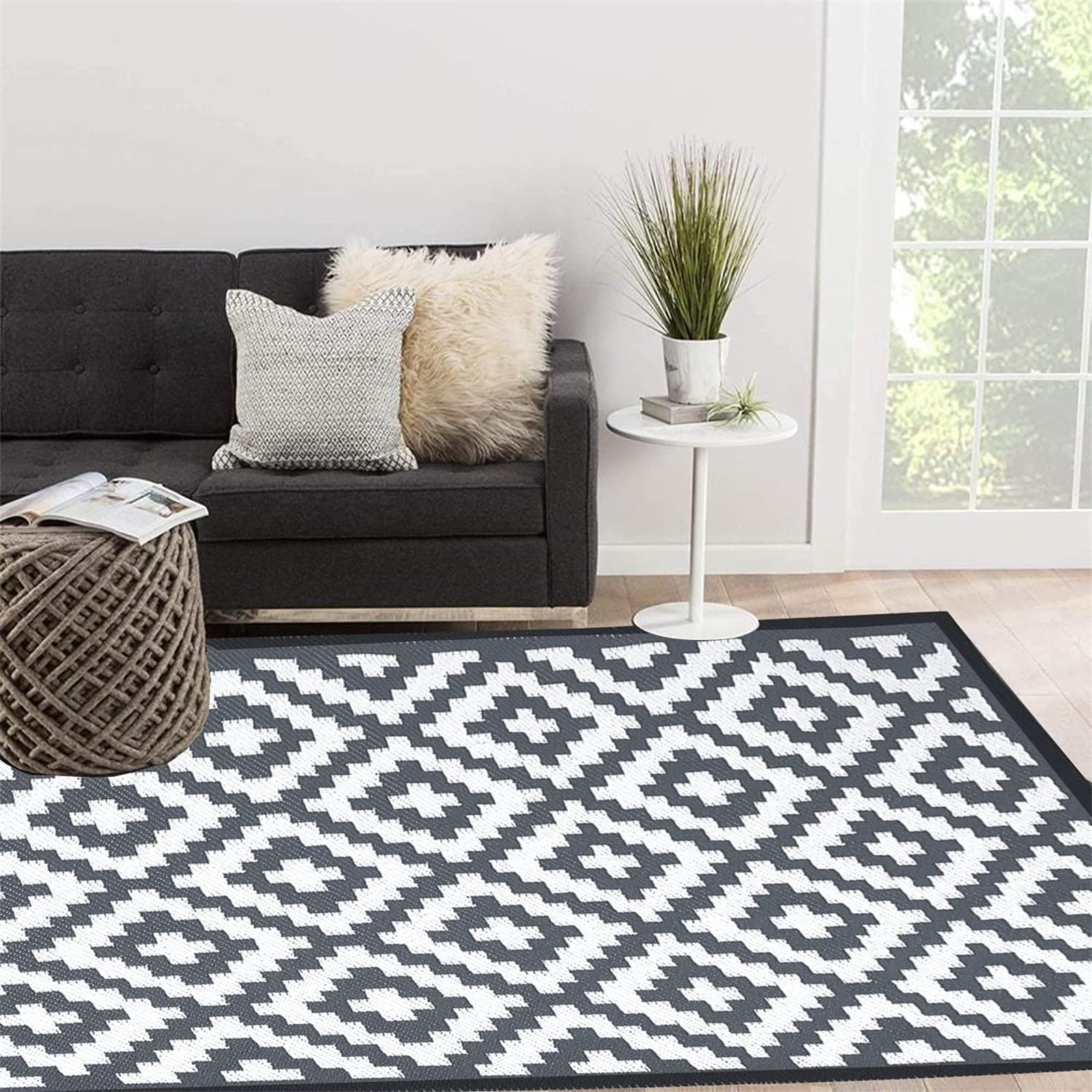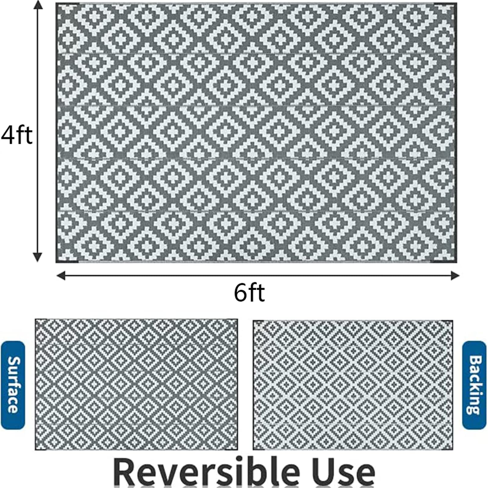 Enipate Geometric Outdoor Rugs for Garden Patios Clearance, 4x6ft Reversible & Easy Cleaning Decking Rug, Portable Comfortable Woven Waterproof Carpet (120x180cm, Grey)