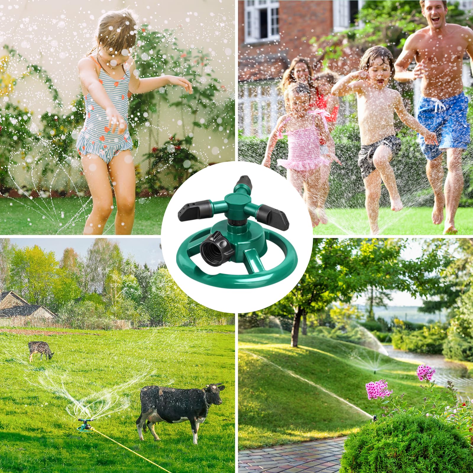 ENJSD Garden Sprinkler, Automatic Lawn Sprinkler, 360 Degree Rotating Durable 3 Arms Adjustable Water Sprinkler Gardening Irrigation System Covering Large Area for Watering Lawn Plants Flowers Veggies