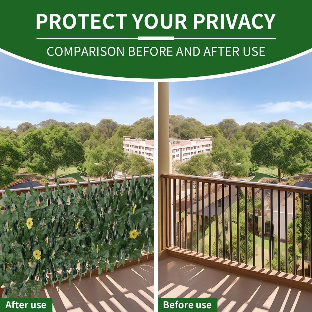 - Widely Applicable: Expandable to create an instant privacy fence screen covered with faux ivy leaves. Flexible, expands or contracts to your desired dimensions and privacy, ideal for wedding decoration, outdoor landscaping design, greenery wall covering, garden fence, balcony privacy screen and home décor.