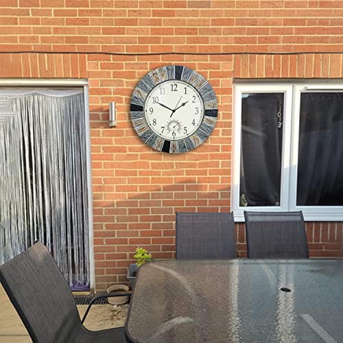 eYotto 13 Inch Garden Clocks Outdoor Waterproof, Large Wall Clock with Thermometer, Weatherproof Non-Ticking Battery Operated for Patio, Pool, Lanai, Fence, Porch, Backyard, Decor, Gift