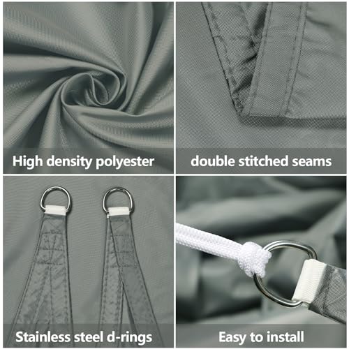 - UV Resist Sail Canopy: the sun shade sail canopy can provide up to 98% uv protection and 90% shading rate, block uv and heat from uv rays effectively.Outdoor sail canopy also shelters you from sun and wind,cooling air temperature and ensuring airflow. Sun shade sail brings you a comformtable and worry free outdoor experience in your patios or gardens