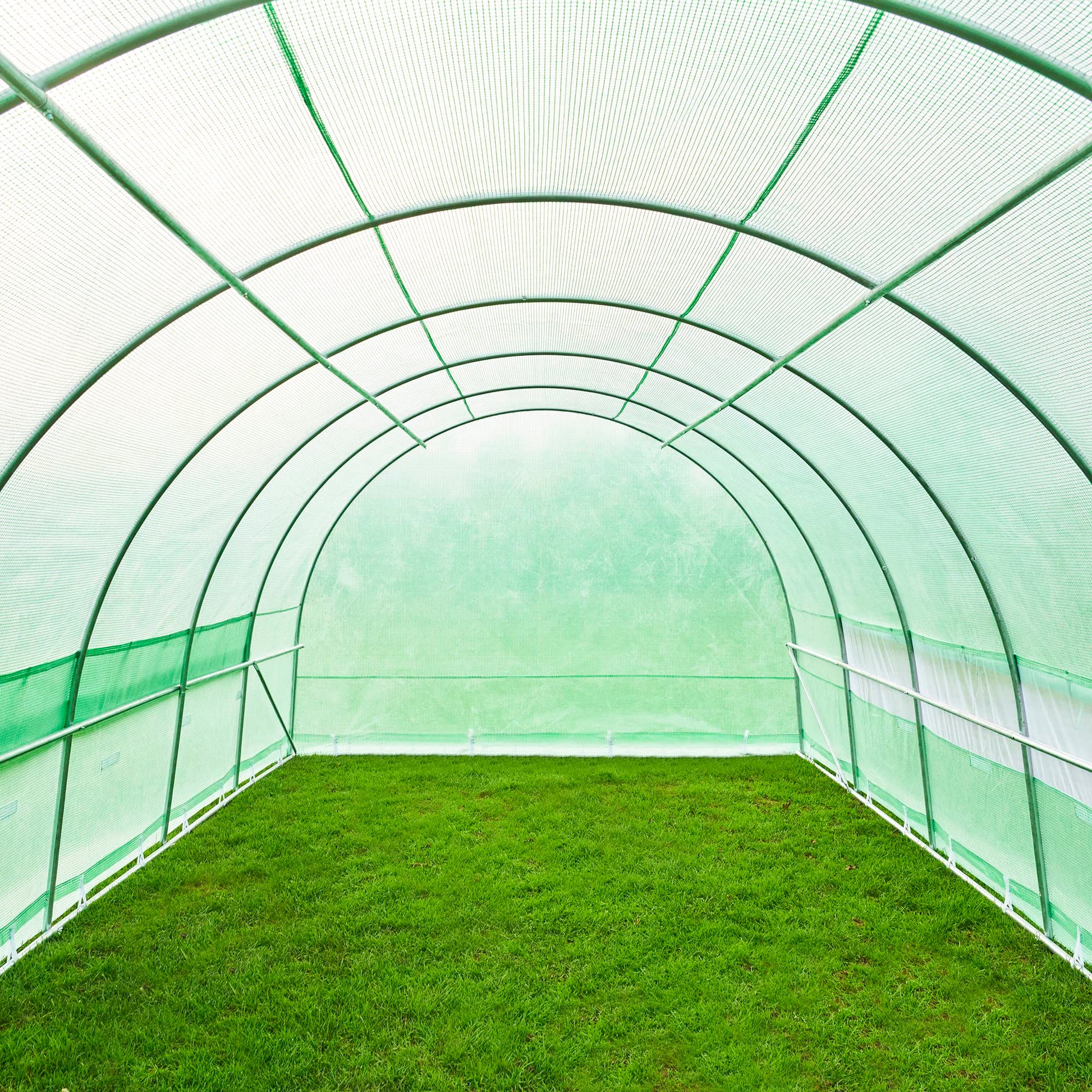 - HEAVY DUTY POLYTUNNEL COVER: As well as superior framework our covers are 140gsm and the UPVC cover will let ample UV light in whilst also being expected to last a number of season in the British climate. There is ample skirt material around the bottom of the polytunnel cover to be dug into the ground for additional stability.
