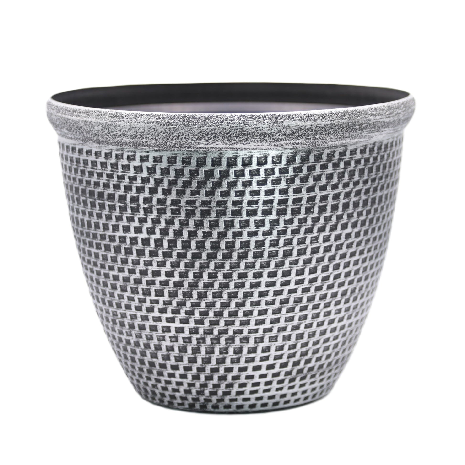 Fyne-Finds Set of 2 Large Plastic Round Silver Cromarty Plant Pot Flower Pot Planter Garden Decoration Antique 30cm, 12inch Outside Planters 10L Outdoor With Drainage Holes