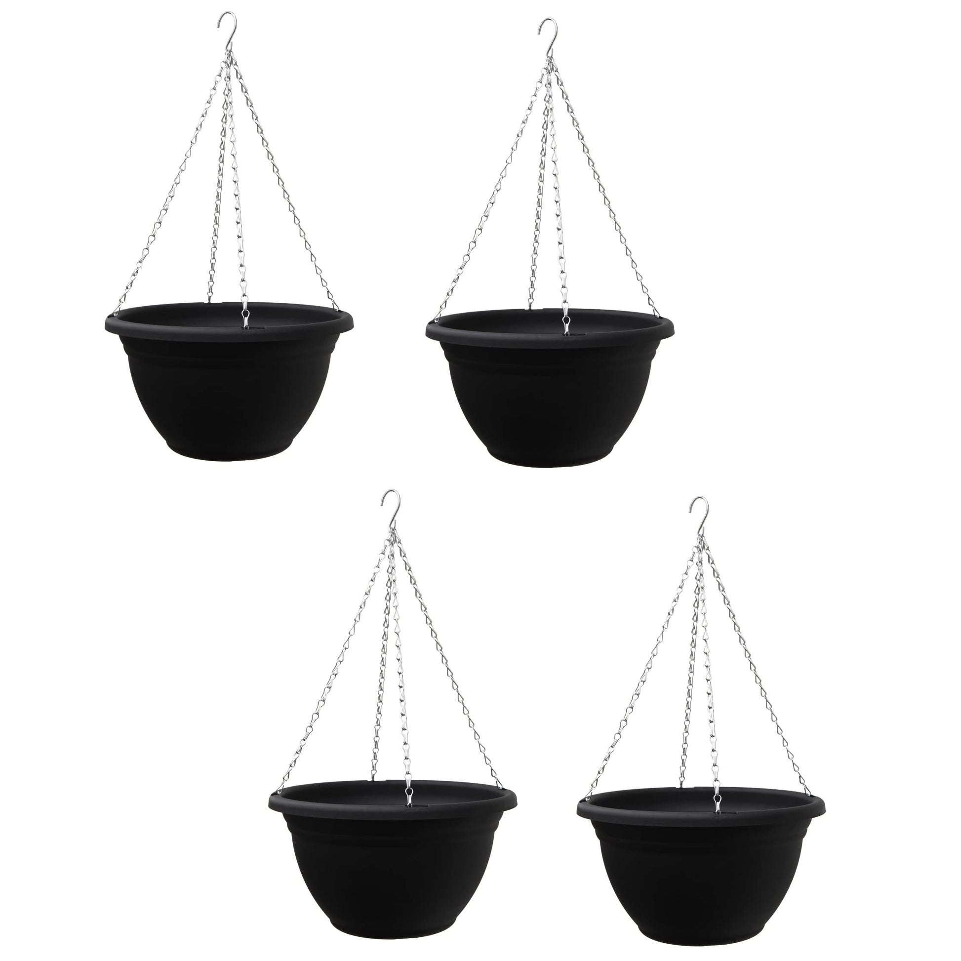 Garden Gear Outdoor Wall Hanging Baskets with Chains, 35cm Garden Flower Plant Pots, Black Easy Fill Planters Outdoor Garden Decor Decorations (Black x4)