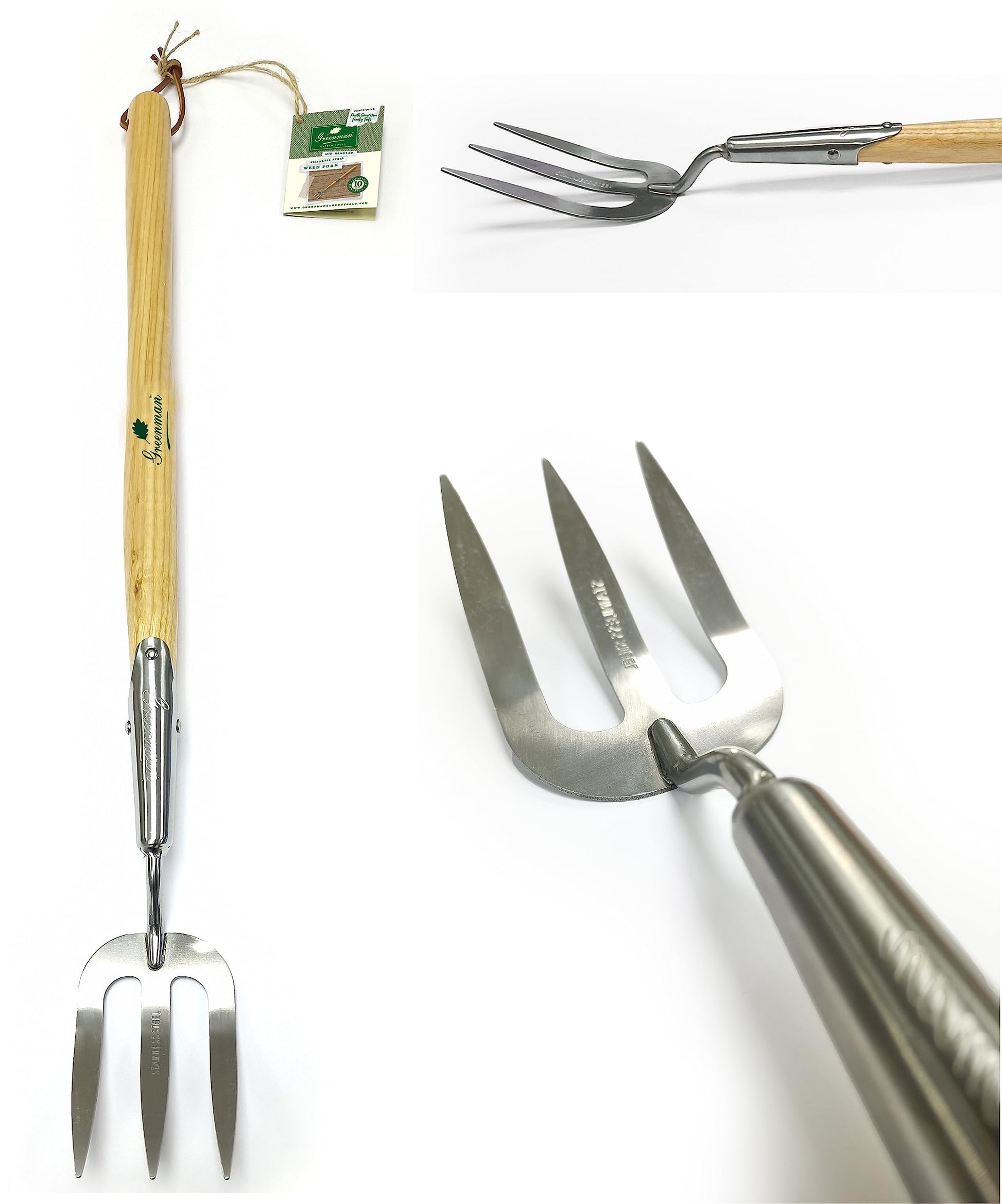 Greenman Tools are made using sustainable Ash for the handles and have beautiful stainless or half brite steel heads.
