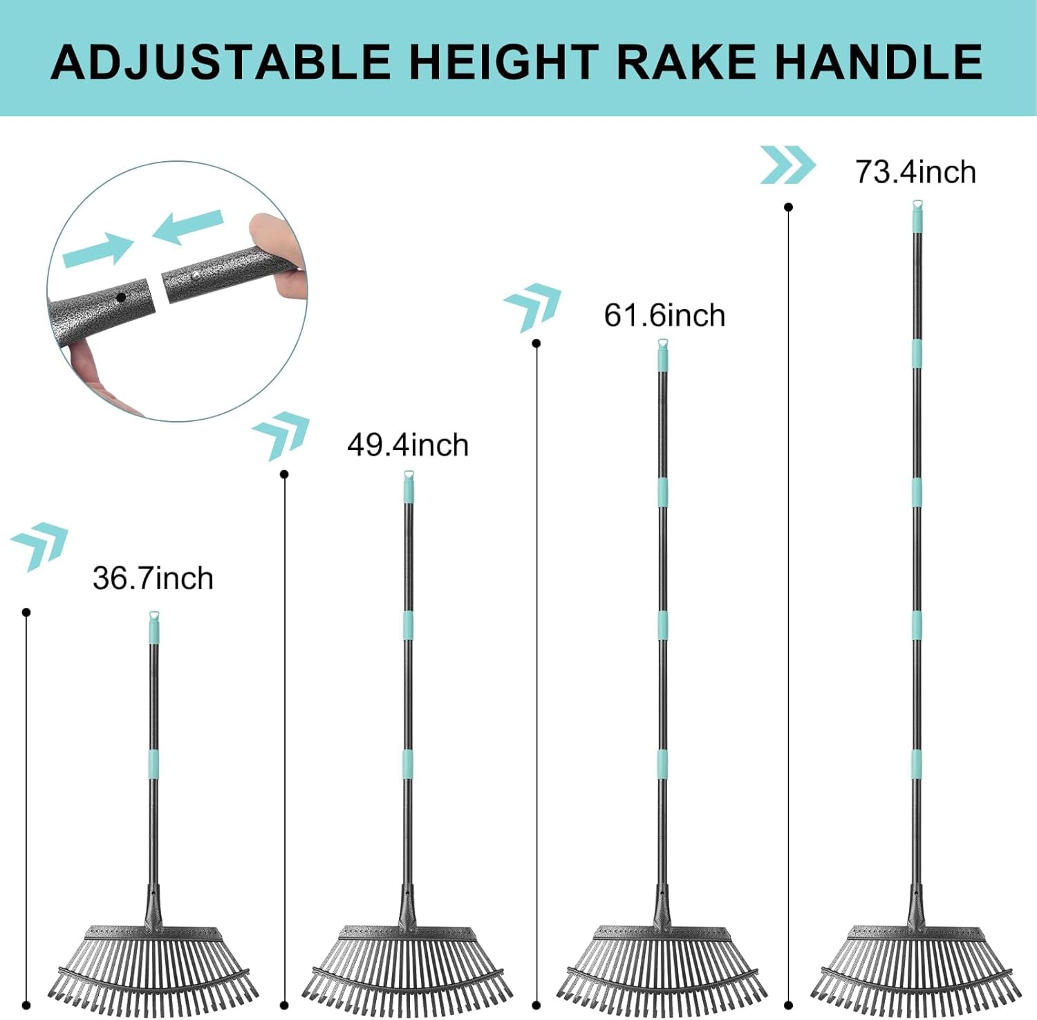 - 【Adjustable Handle】The total length of the rake can be adjusted between 37-73Inch, which can efficiently collect leaves without bending over repeatedly. Fits medium to tall adults as well as children.