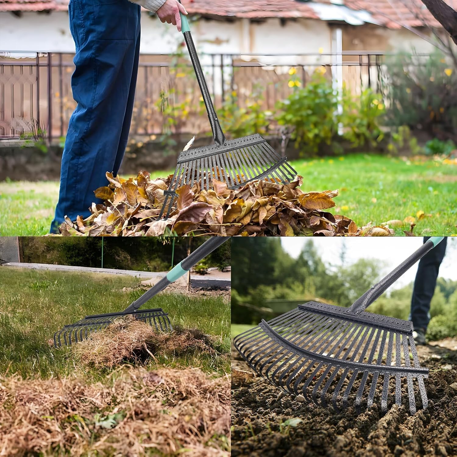 - 【Multiple Applications】Perfect for raking leaves, grass, pine cones, weeds & yard debris, the heavy duty leaf rake is suitable for weeding, leveling & lawn grooming. Use yard rake to rake flowerbeds, gardens & more.