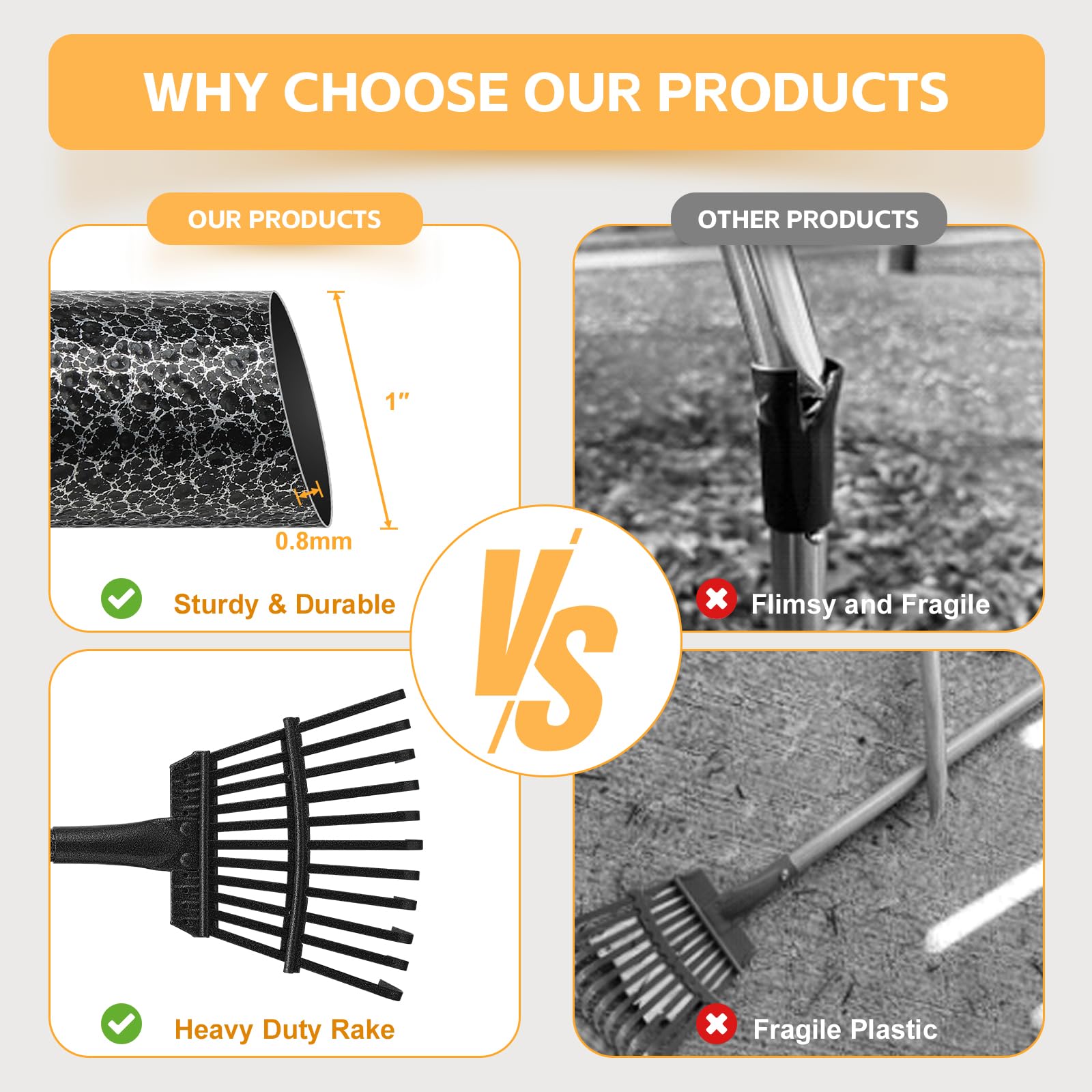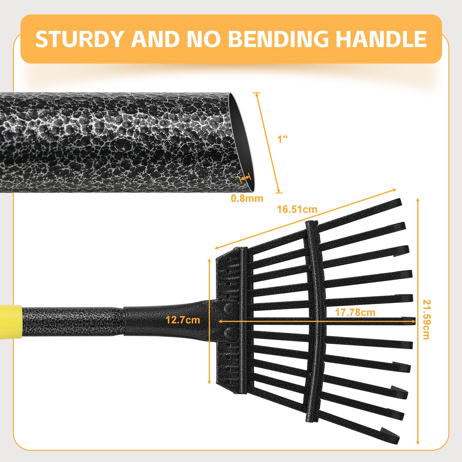 - Heavy Duty : Garden leaf rake made of metal is more durable than plastic rakes. 11 tines allow you to work in lawn and garden without tines falling out, damage, fracture, corrosion.