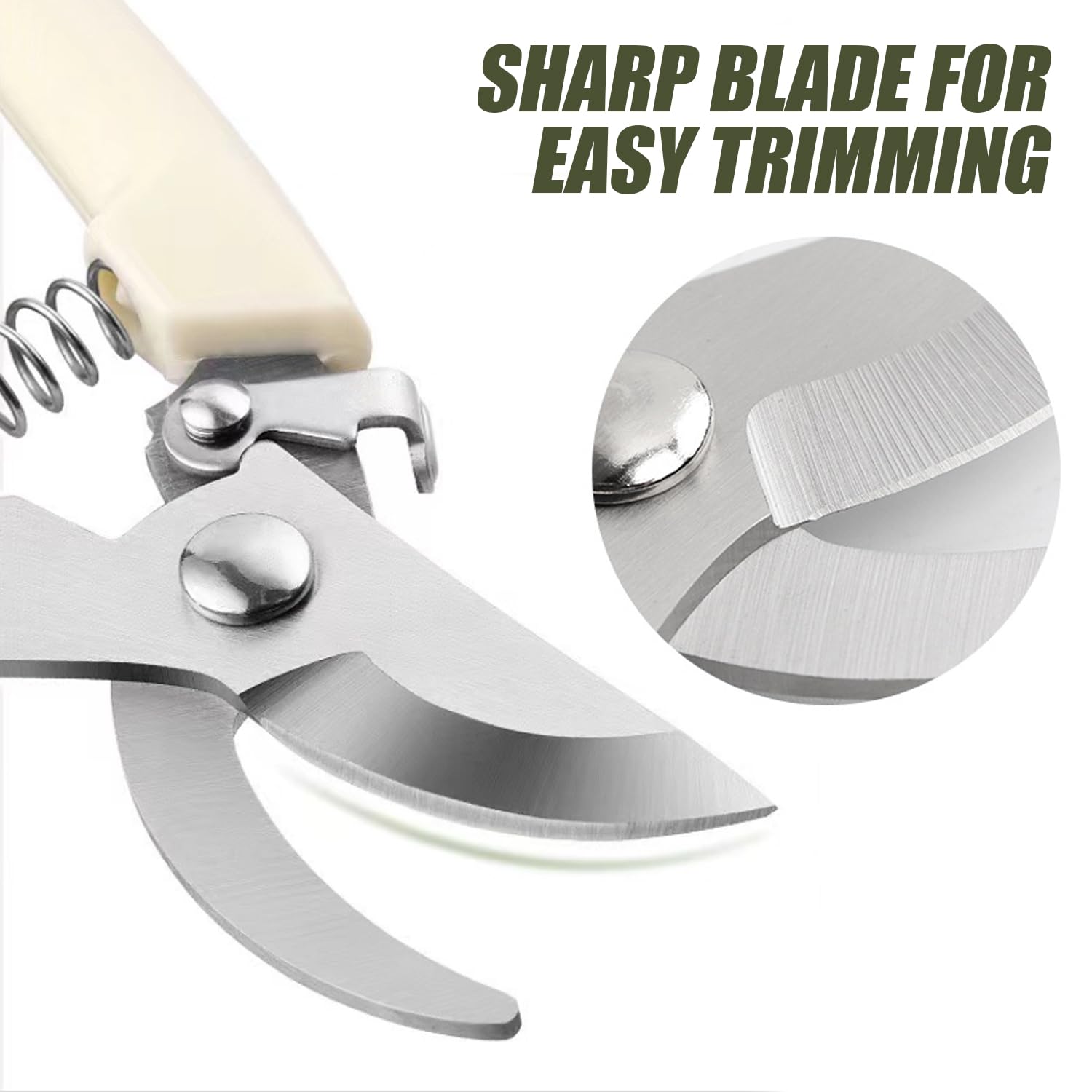 - These garden pruning shears are designed with springs that keep the blades automatically open after each cut. It saves your physical strength and reduces fatigue in your arms and hands