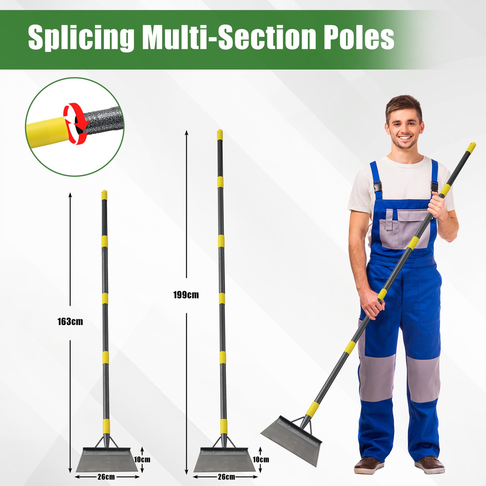- Easy to Assemblye: Easy 1-minute assembly without tools, all parts are connected and tightened by twisting and screwing together. The detachable design simplifies storage, saving space in your shed or garage when the shovel is not in use. Note: If the parts get loose, pls rescrew them together again.