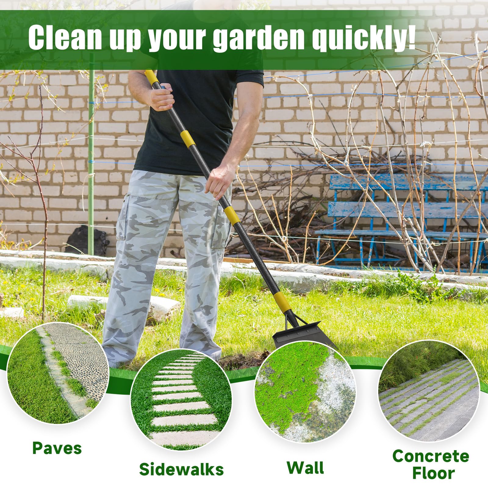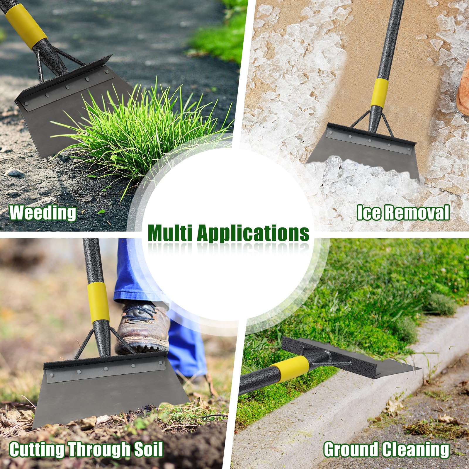 - Multifunctional Scarper: Garden shovel is great for scraping the grass and weeds from the concrete seams and cracks. It could also be used to scrape up packed snow and ice, or to edge your yard of flower beds. Perfect for any season and task in your garden.