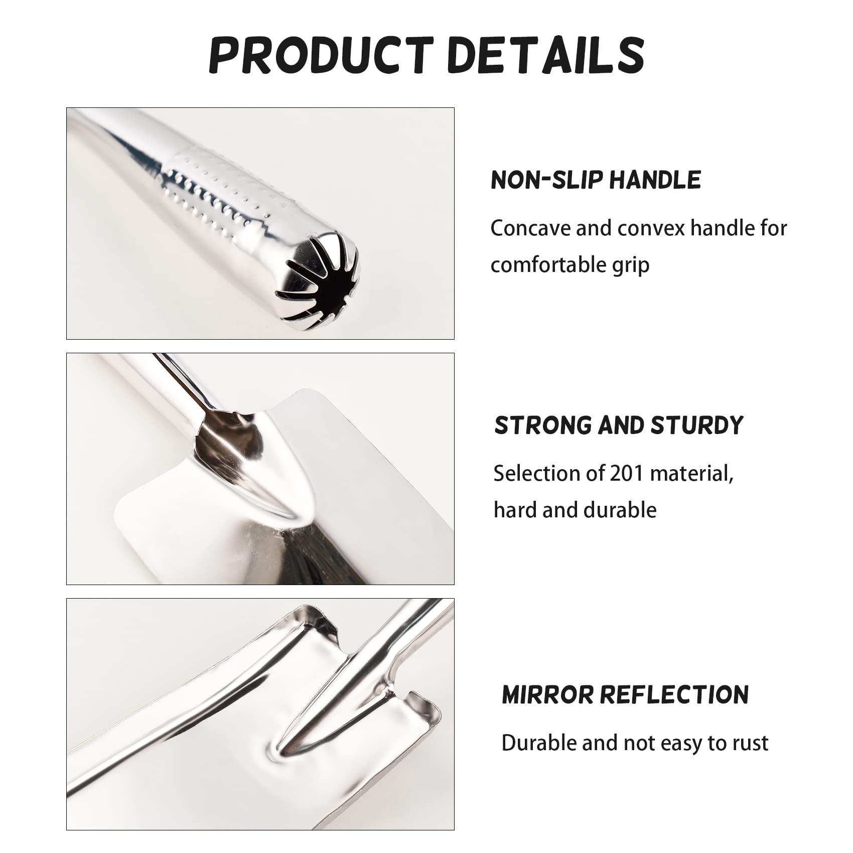 - Stainless Steel Material: This robust trowel is built with rugged stainless steel that is high-strength and will never rust which makes it as tough as nails!