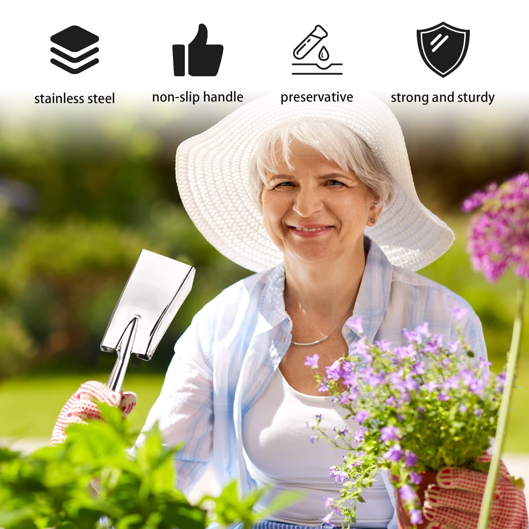 - Perfect Garden Shovels: The garden trowels is ideal for easy digging into tough soil, breaking up hardened dirt clods, planting, transplanting, removing stubborn weeds, mixing soil and compost or scooping fertilizer.