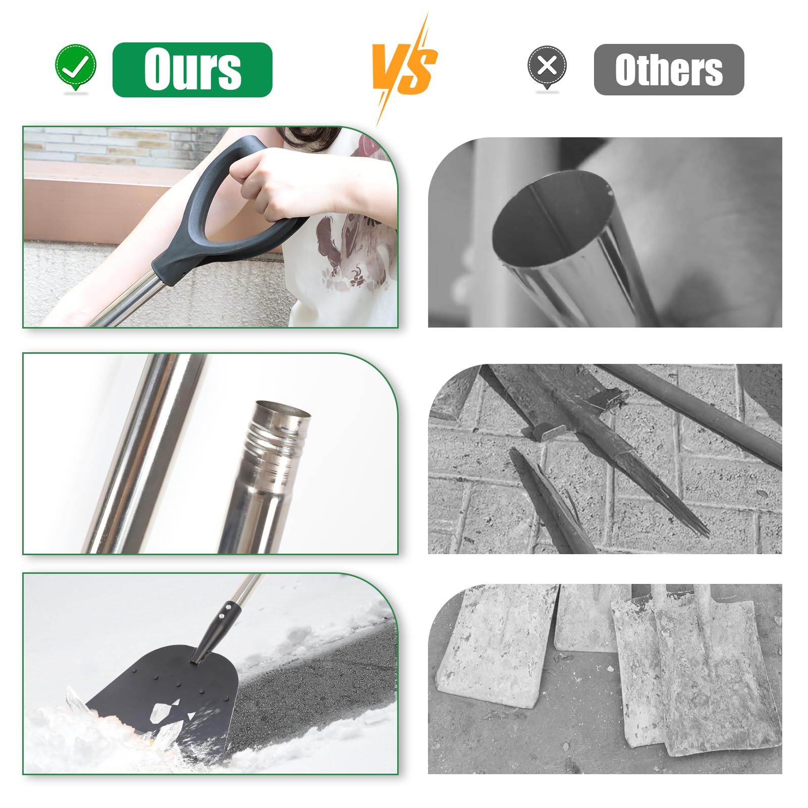 - āćmultifunctionalćThe outdoor removel tool is made of selected high-quality steel and undergoes precision high-temperature treatment to ensure sturdy non-deformation and wear resistance. It also can be as a snow shovel, the sharp blade easily cuts through the ice, can quickly remove snow and ice from pavements, driveways and roads making shovelling snow and ice easy and efficient.