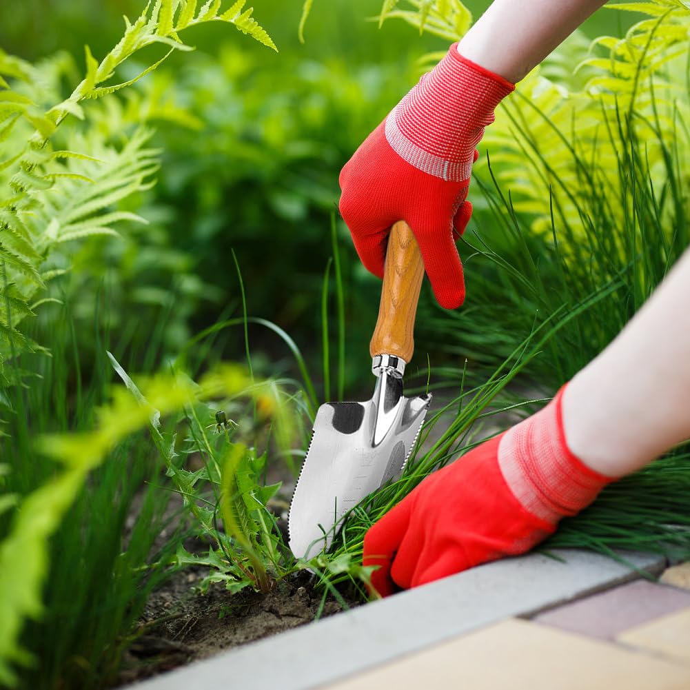 - The stainless steel trowel offers a serrated edge for cutting through the roots of weeds/opening compost bags, Engraved depth markings for accurate planting.