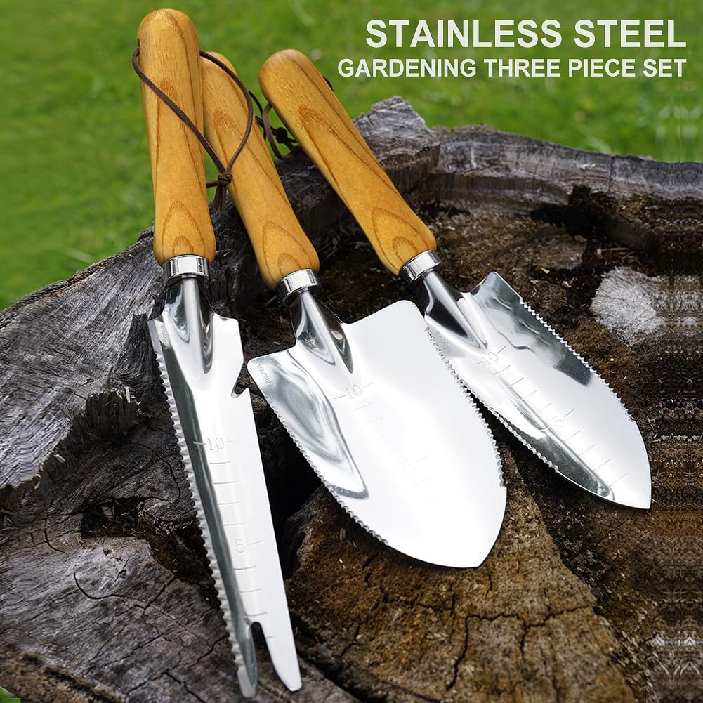 Garden Trowel, Hand Trowels Shovel with Measuring Depth Mark, Ergonomic Wood Grain Handle, Stainless Steel Gardening Tool for Planting, Weeding, Transplanting and Smoothing Soil (Trowels-1)