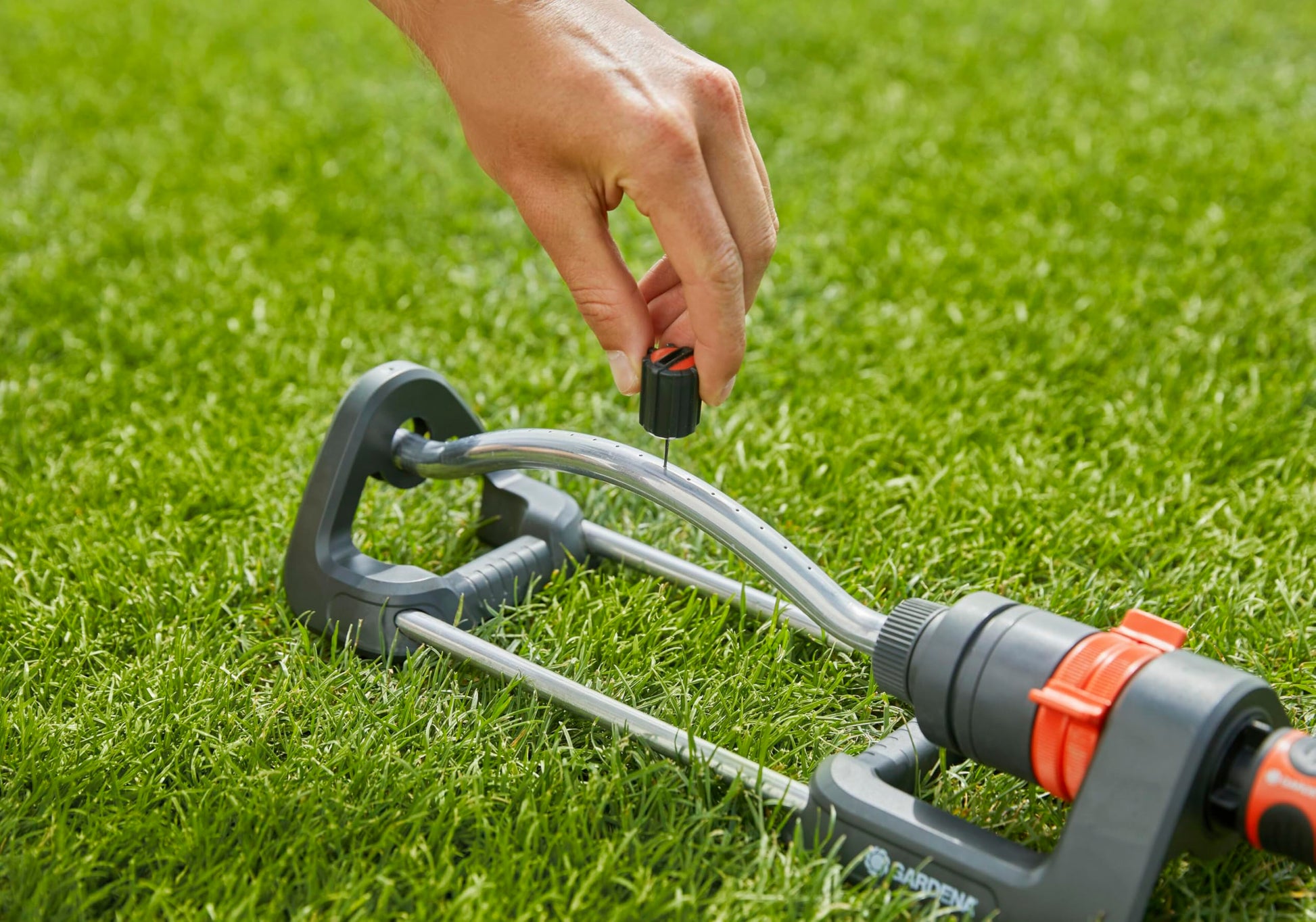 Gardena Aqua S oscillating sprinkler: Lawn sprinkler for watering areas of 90–220 m², range 7–17 m, spread max. 13 m, built-in metal filter (18700-20)
