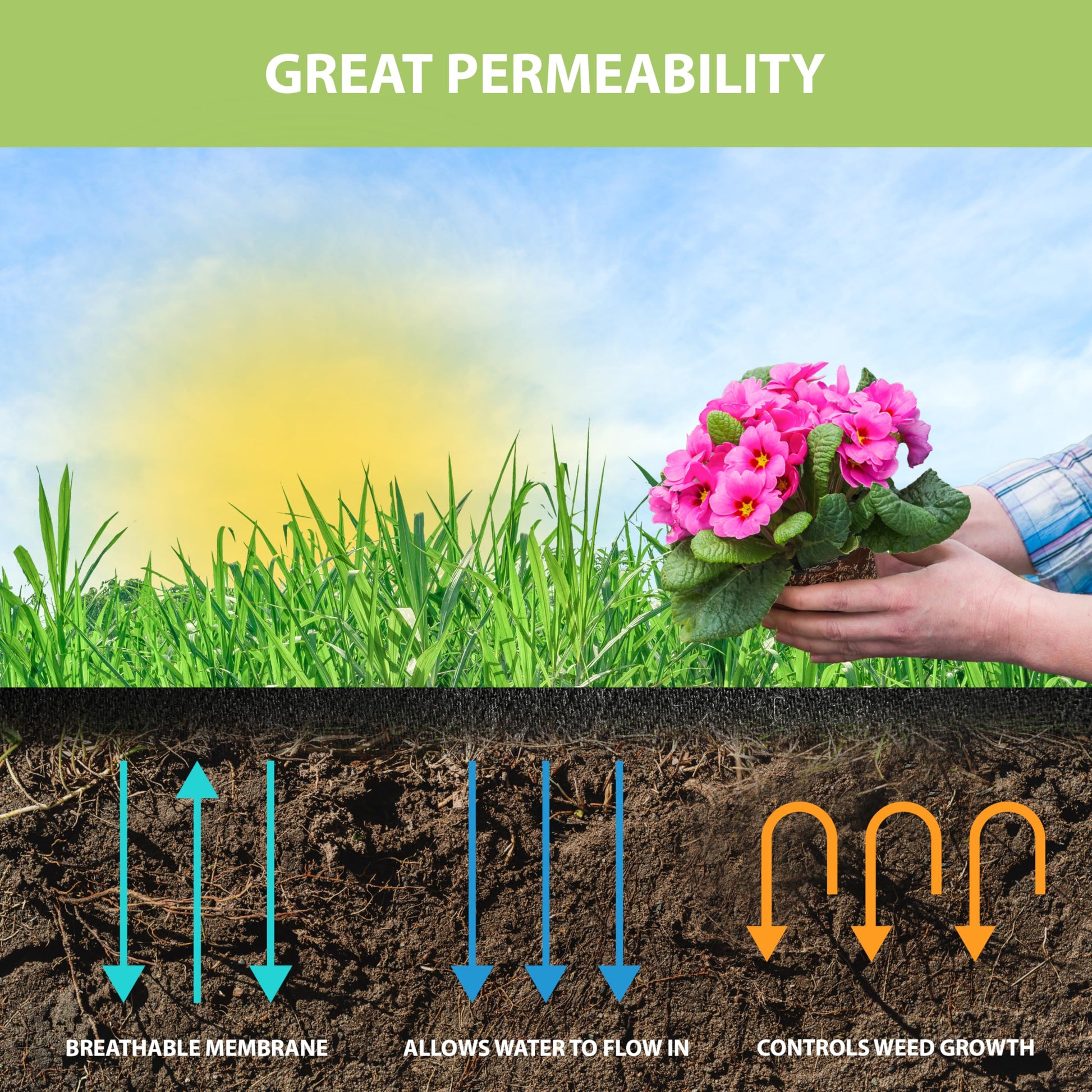 - DURABLE AND PERMEABLE MATERIAL: UV-stabilized, weather-resistant non woven geotextile membrane allows air and water flow for robust root development and long-lasting garden protection.