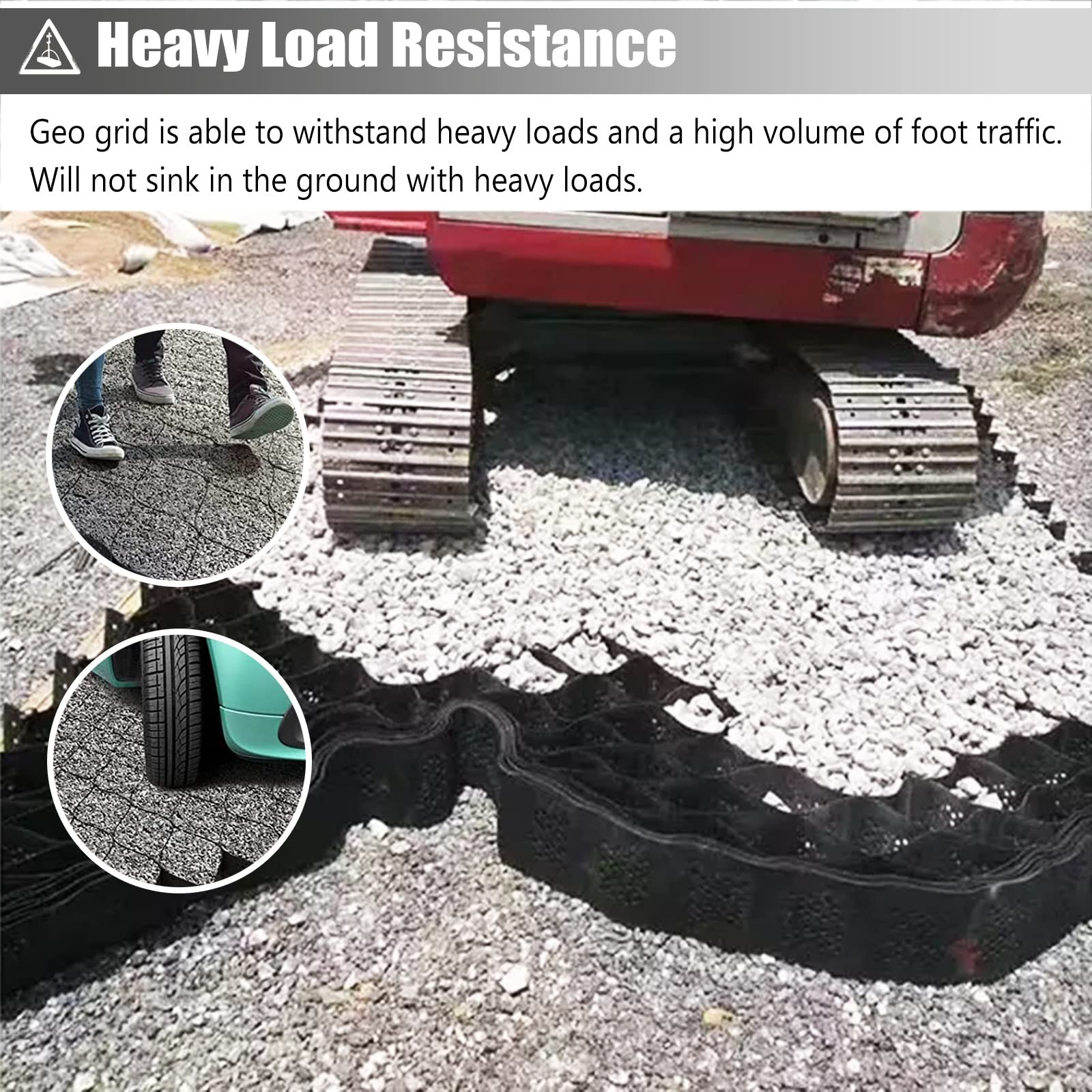 - 【 3000kg/6600 LBS(SQ FT) 】The ground stabilization grid features tensile strength that holds up to 6600 LBS per sq ft strength when cells are filled. Paver with supersonically weld technology will not sink in the ground with heavy loads.