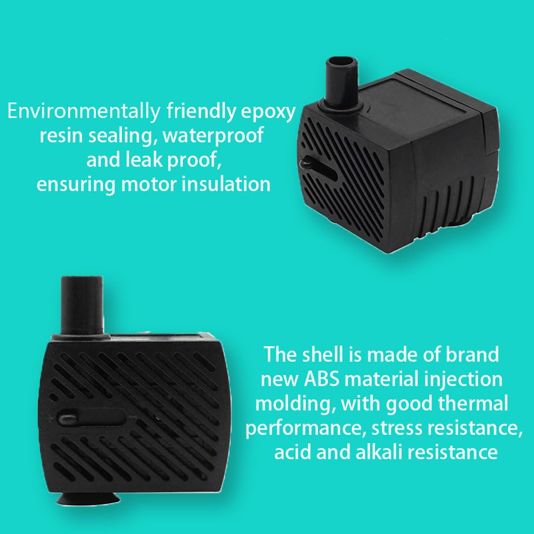 - 【Easy to Clean & Use】 No need any tools to detach it, easy to seperate, easy to clean, and simply plug in power for quick water draining. Can be installed quickly after cleaning saves you time. This submersible pump is designed for small to medium size aquarium, Fish tank, Pond, tabletop fountains, water gardens and hydroponic systems.