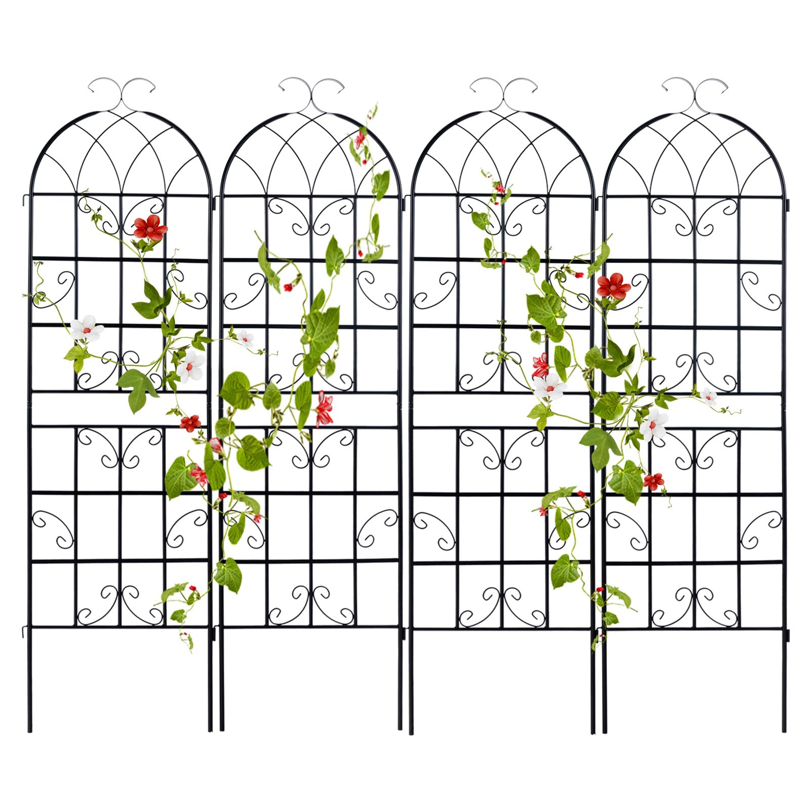- Rustproof & Stable Frame: The garden trellis is made of galvanized metal, which is not easy to deform, anti-rust and weather-resistant, thus ensuring long lasting use. Equipped with sharp ends, the metal trellis allows for easy insertion into the ground for stability.