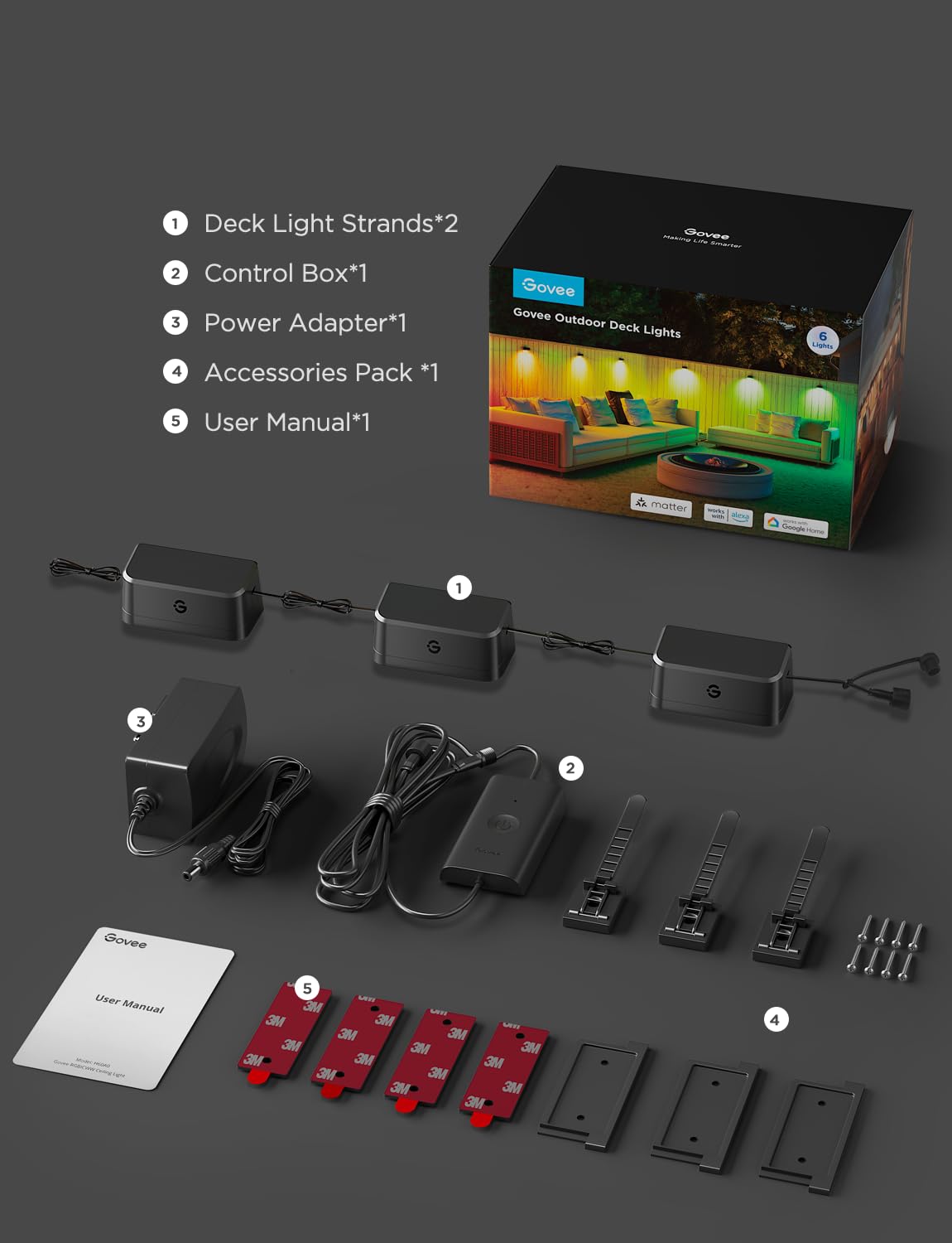 - Smart Control: Operate Govee Outdoor Decking Lights via app, remote or voice control, plus enjoy third party compatibility via Matter. Offers both Bluetooth and Wi-Fi for flexible control. Includes a convenient timer switch for automated lighting management.