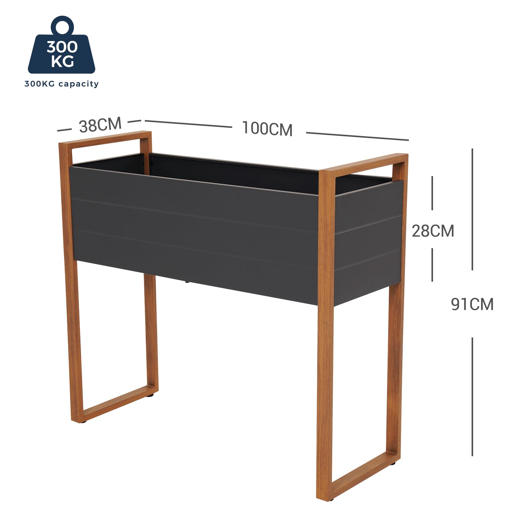 - AMPLE PLANTING SPACE: Raised planter box: 100 L x 38 W x 28D(cm), holds about 3.65 cubic feet of soil, Our elevated garden bed provides spacious growing space to raise vegetables, herbs, flowers, and other plants. Smart solution for limited space! Perfect size for kids and other gardeners!
