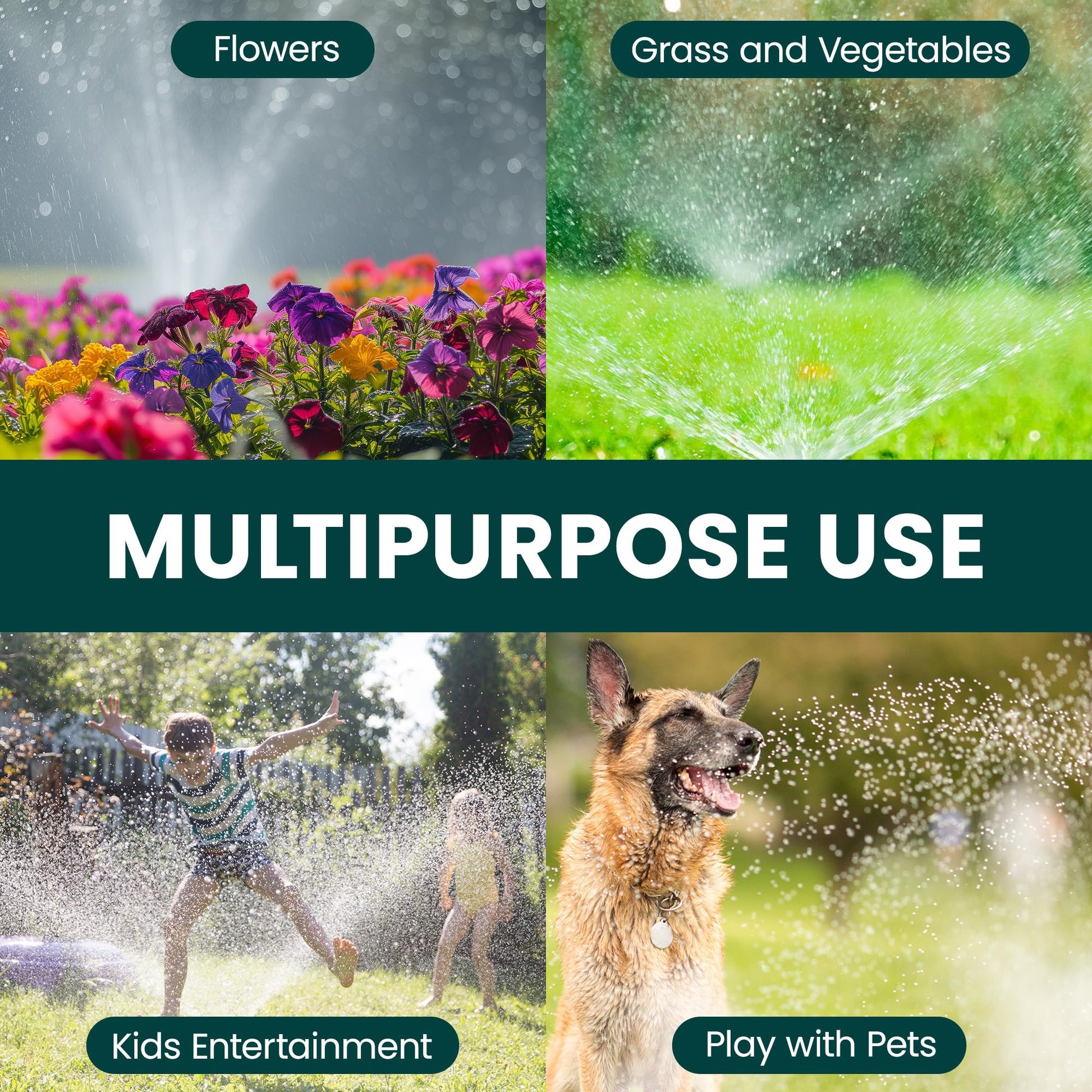- MULTIPURPOSE & FUN – This rotating grass watering sprinkler attachment is versatile and perfect for watering lawns, gardens, yards, and fields. It also doubles as a fun water feature for kids to enjoy on hot days. This lawn sprinkler meets all your watering needs while adding a splash of fun to your outdoor activities.