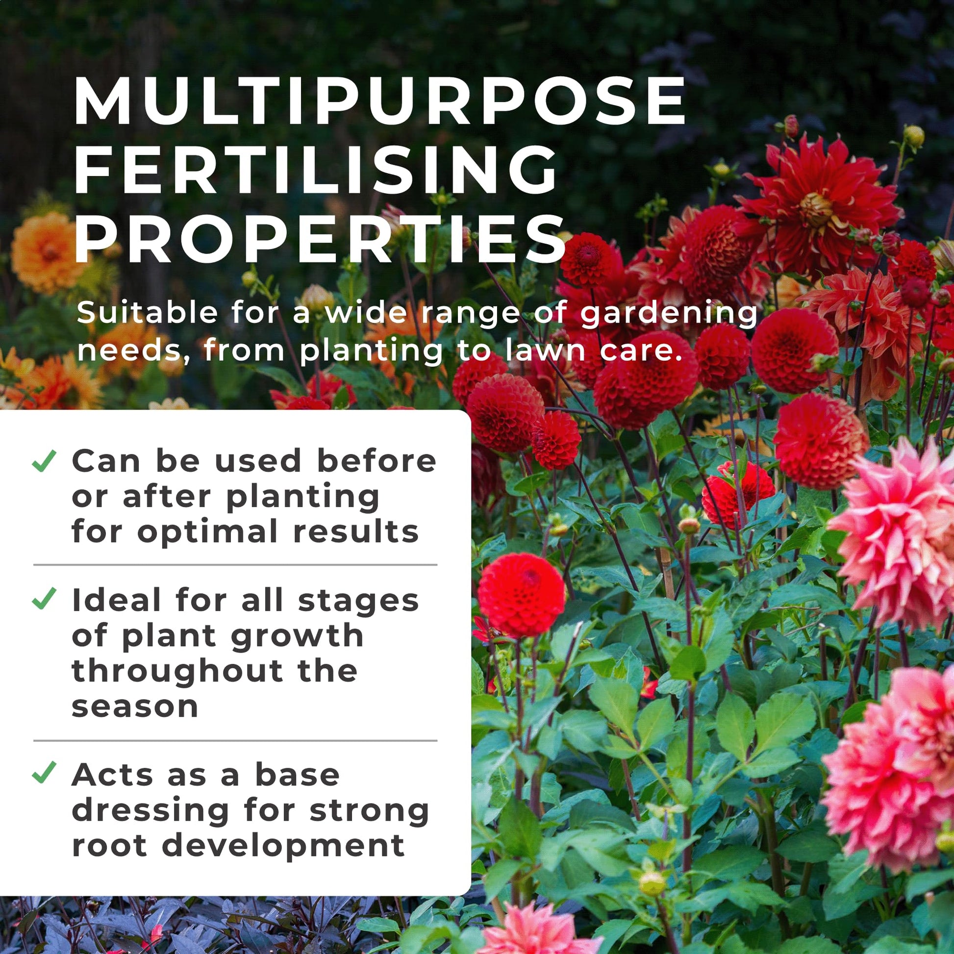 - ALL-SEASON VERSATILITY – This fertiliser for plants improves soil quality by feeding beneficial bacteria that break down harmful toxins, making it denser and healthier. From pre-planting to post-cutting, this all-purpose fertiliser is perfect for all-season growing