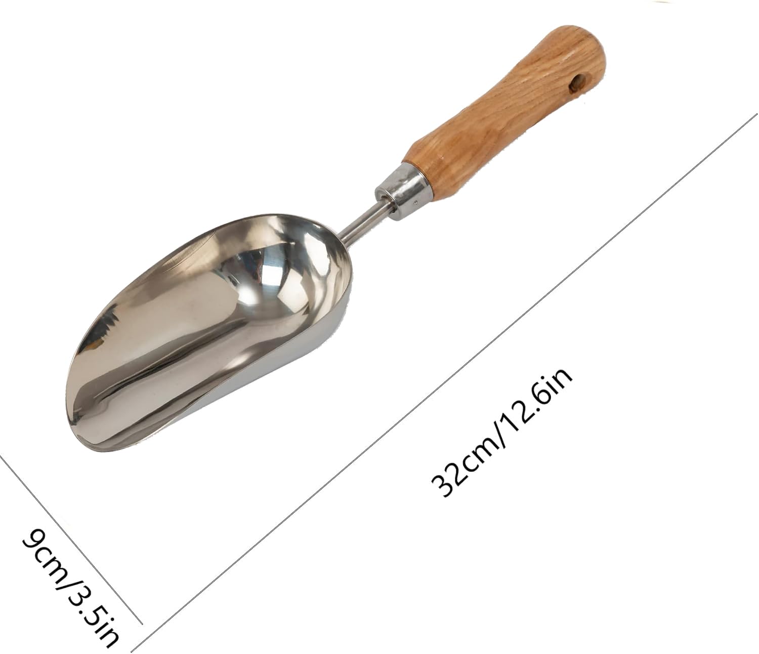 - Rust-resistant: The stainless steel scoop boasts excellent rust resistance and is designed for minimum adhesion of soil and compost while potting plants