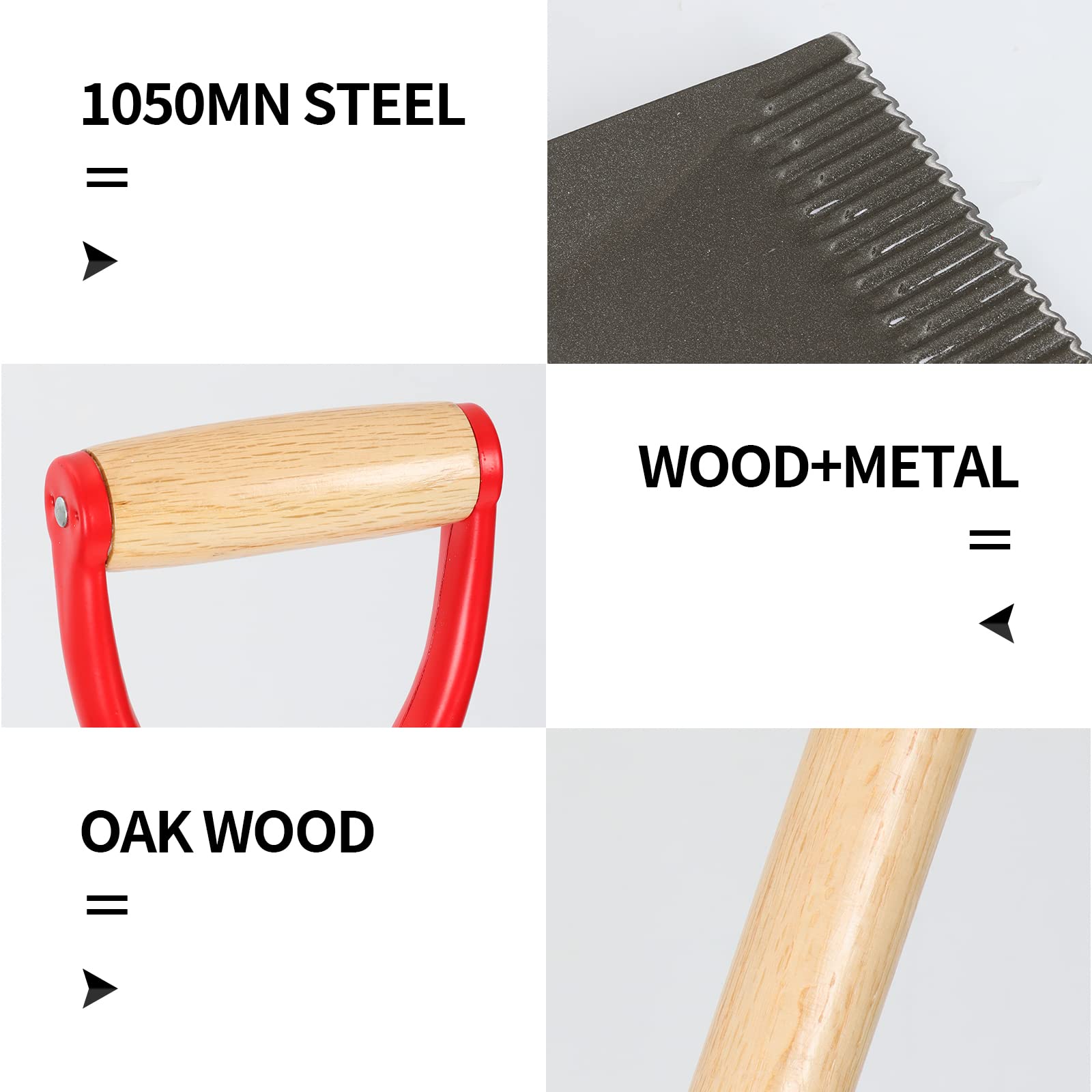 - MATERIAL - The head of the spade shovel is made of 1050MN steel,the handle is made of wood, and the hand grip is made of wood and metal